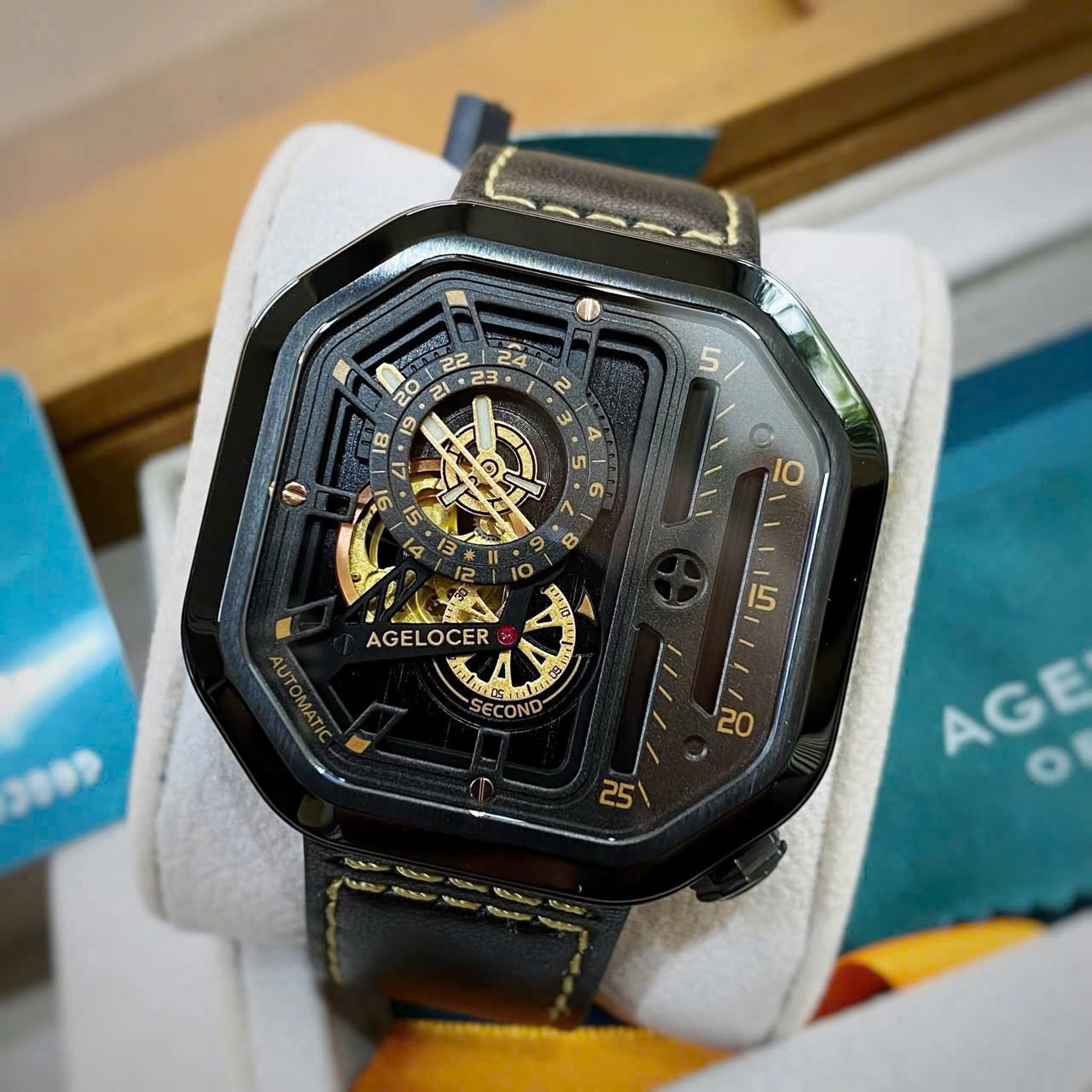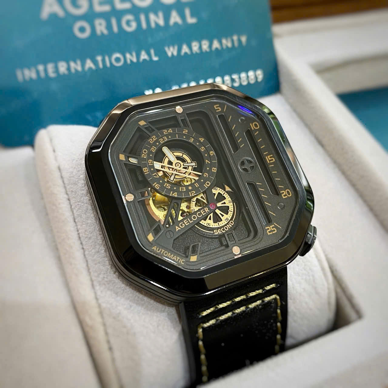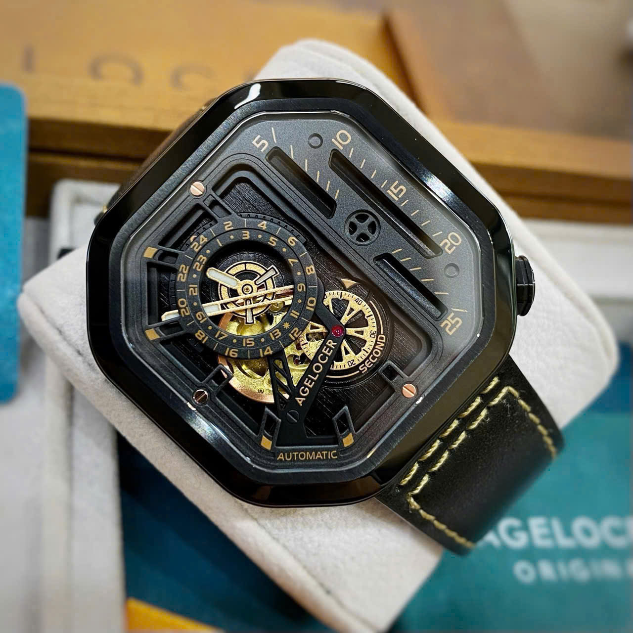 Đồng Hồ Agelocer BigBang 5803J3 Nam Dây Da Màu Đen MẶt Vuông Chính Hãng 44mm