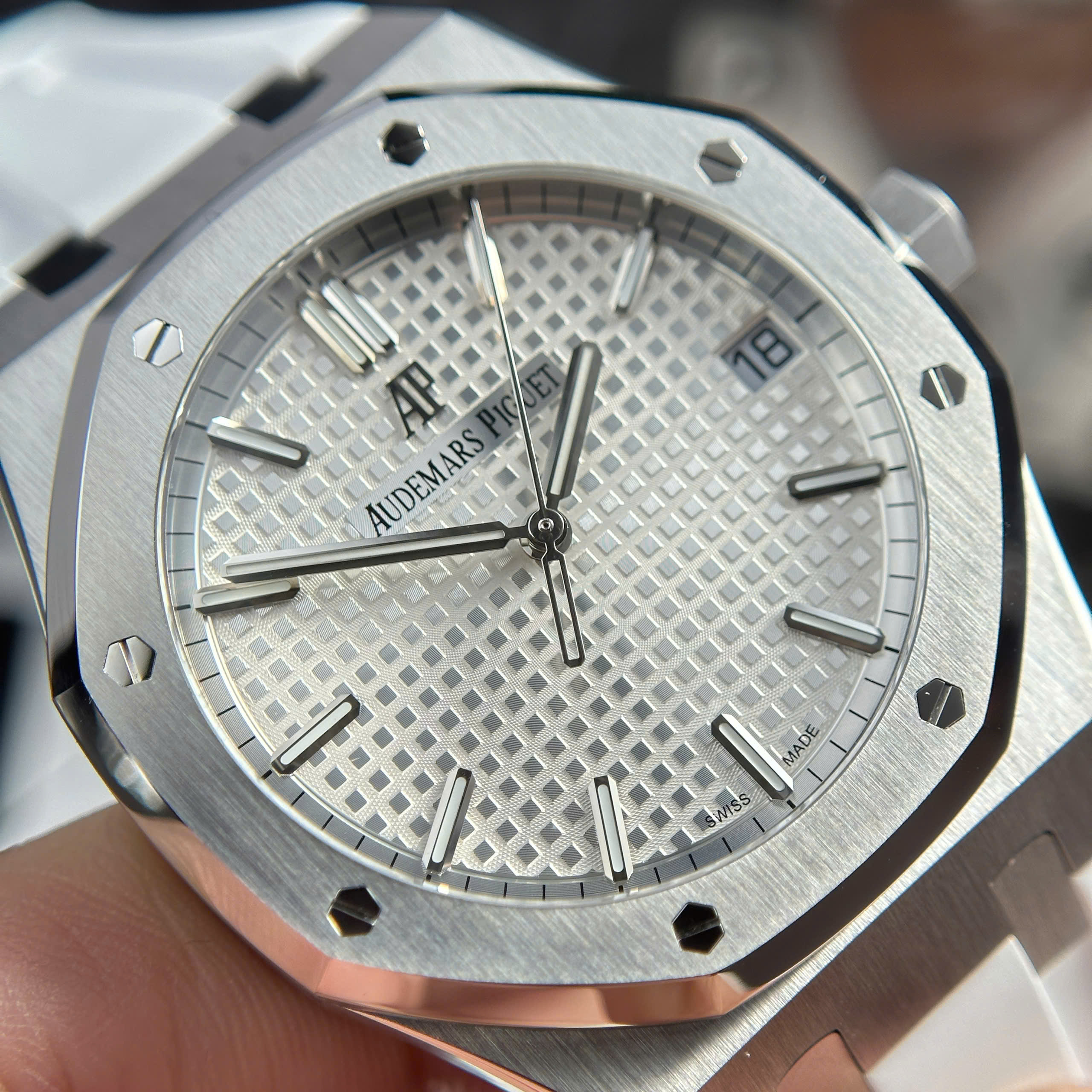 Đồng Hồ Audemars Piguet Royal Oak 15500ST Dây Cao Su Trắng APS 41mm