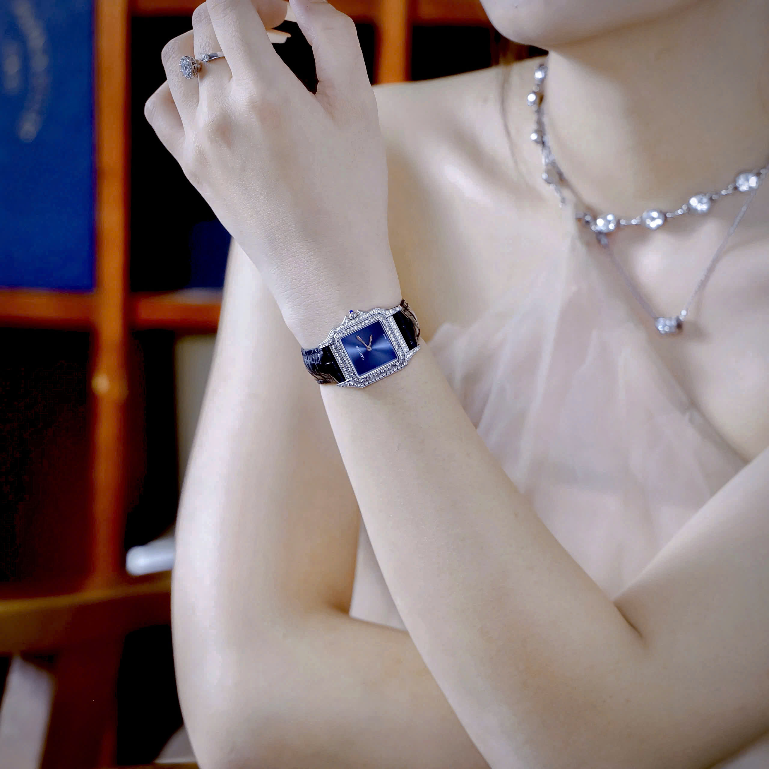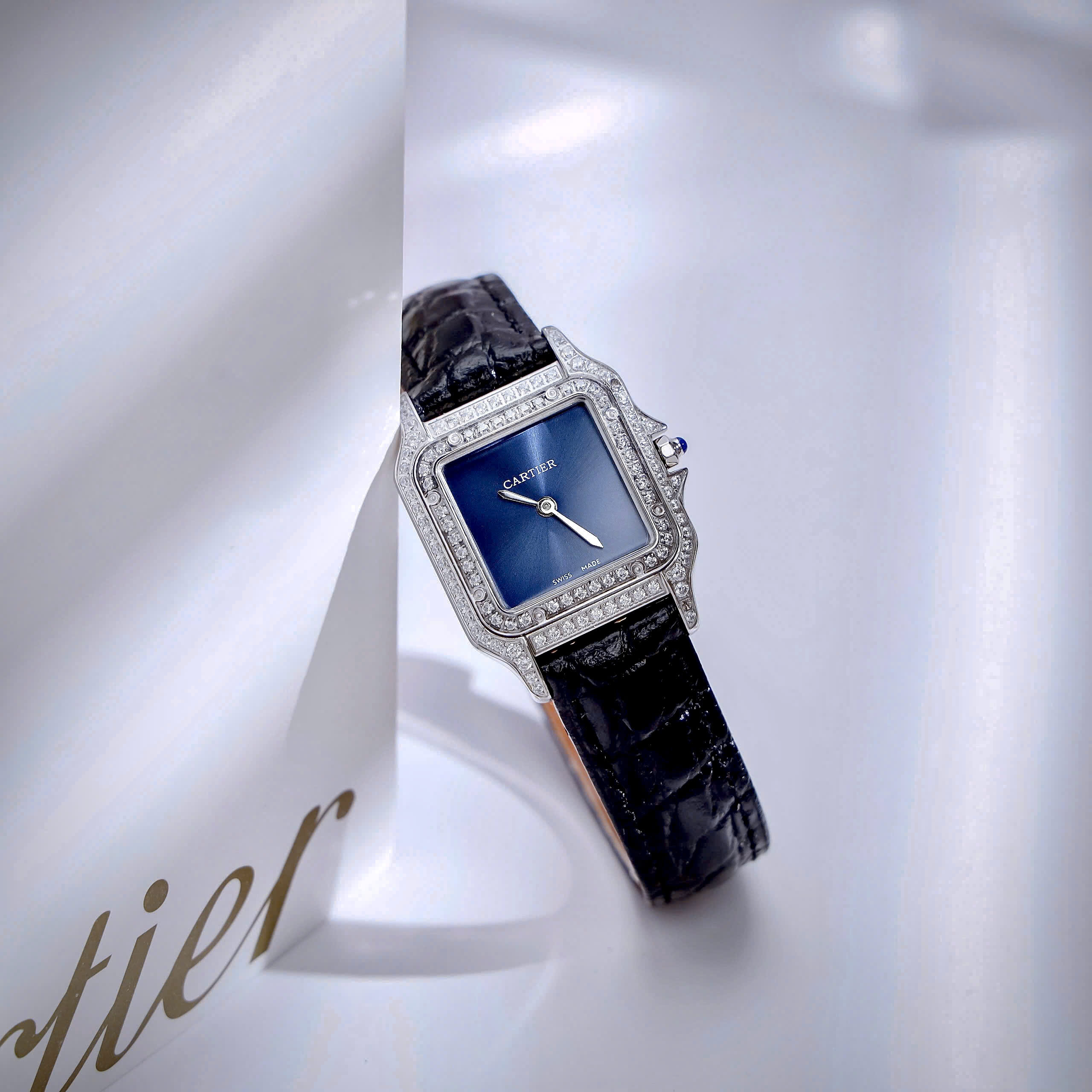 Đồng Hồ Cartier Panthere De Cartier Fake Cao Cấp Nữ Đính Đá Màu Xanh 27mm