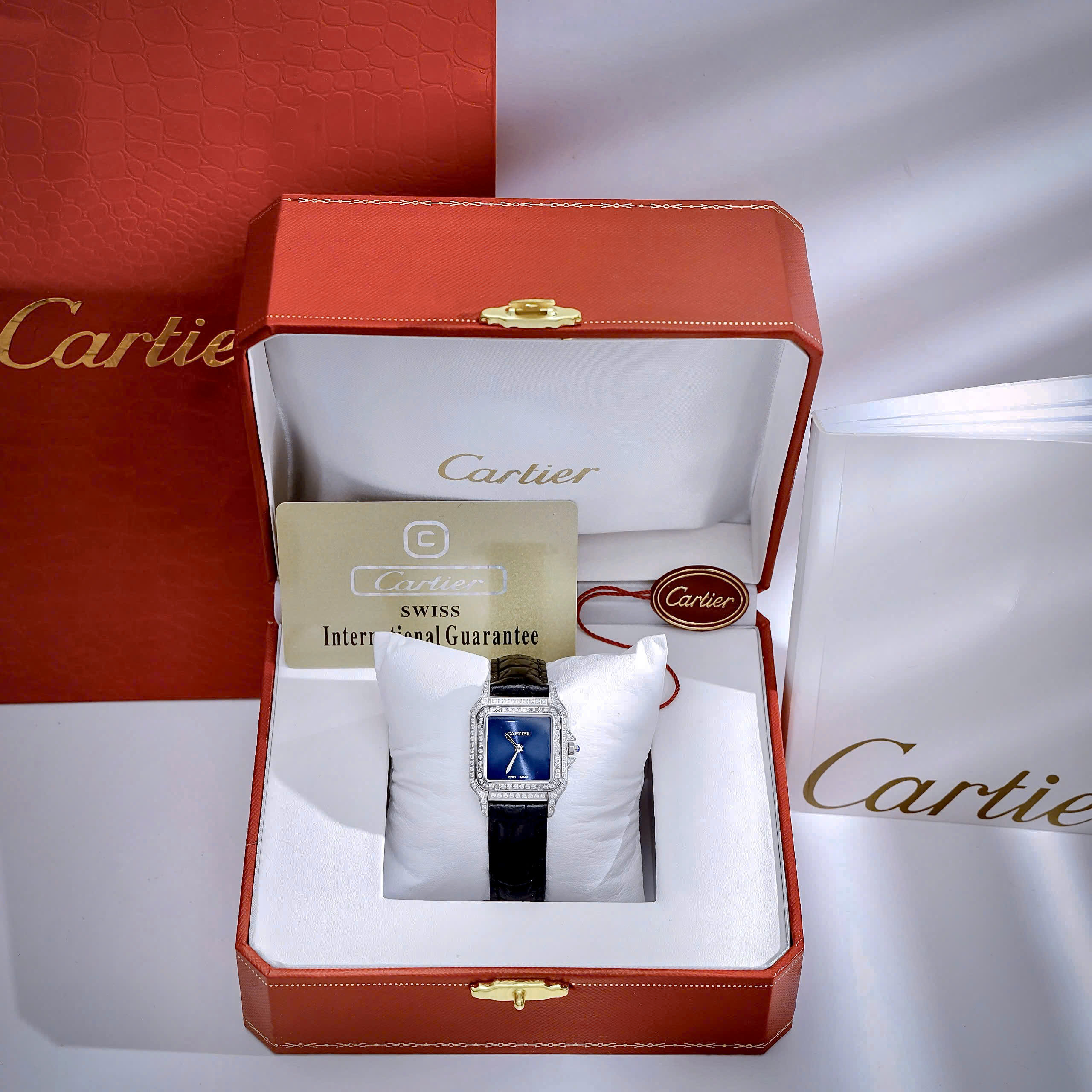 Hãy là người đầu tiên nhận xét “Đồng Hồ Cartier Panthere De Cartier Fake Cao Cấp Nữ Đính Đá Màu Xanh 27mm”