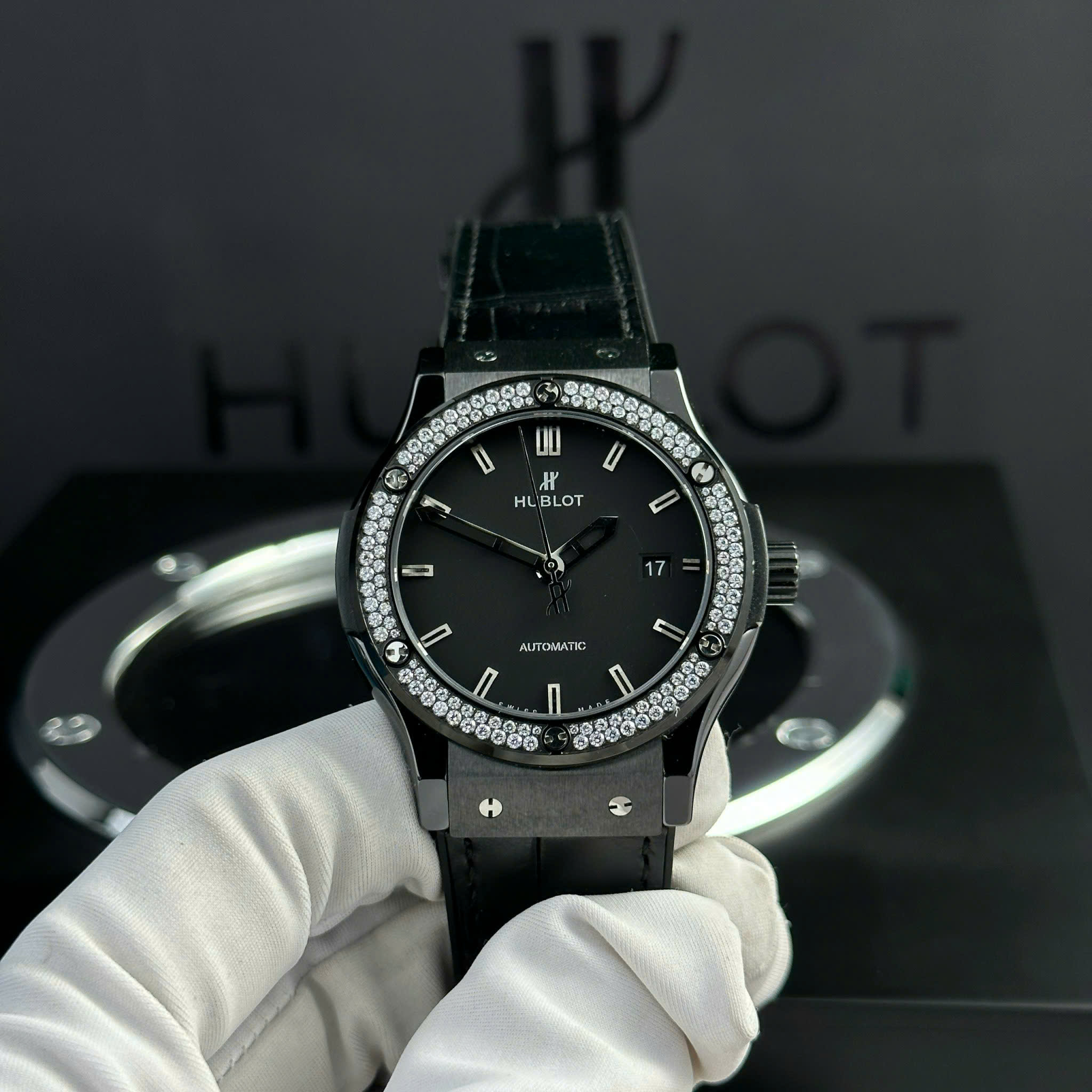 Đồng Hồ Hublot Classic Fusion Ceramic Replica 1 1 Viền Đính Đá Nhà Máy JJZ 42mm