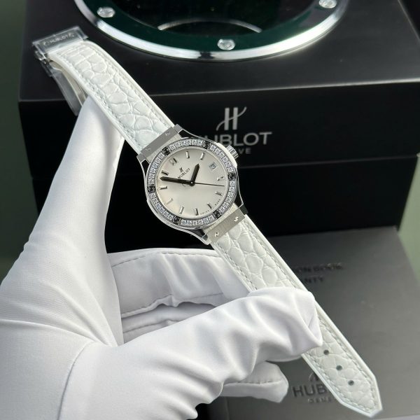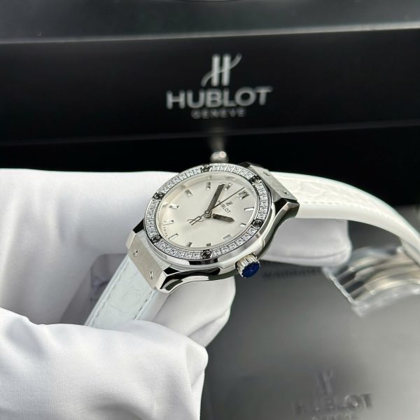 Đồng Hồ Hublot Classic Fusion Mặt Số Trắng Viền Đính Đá Nhà Máy HB 33mm
