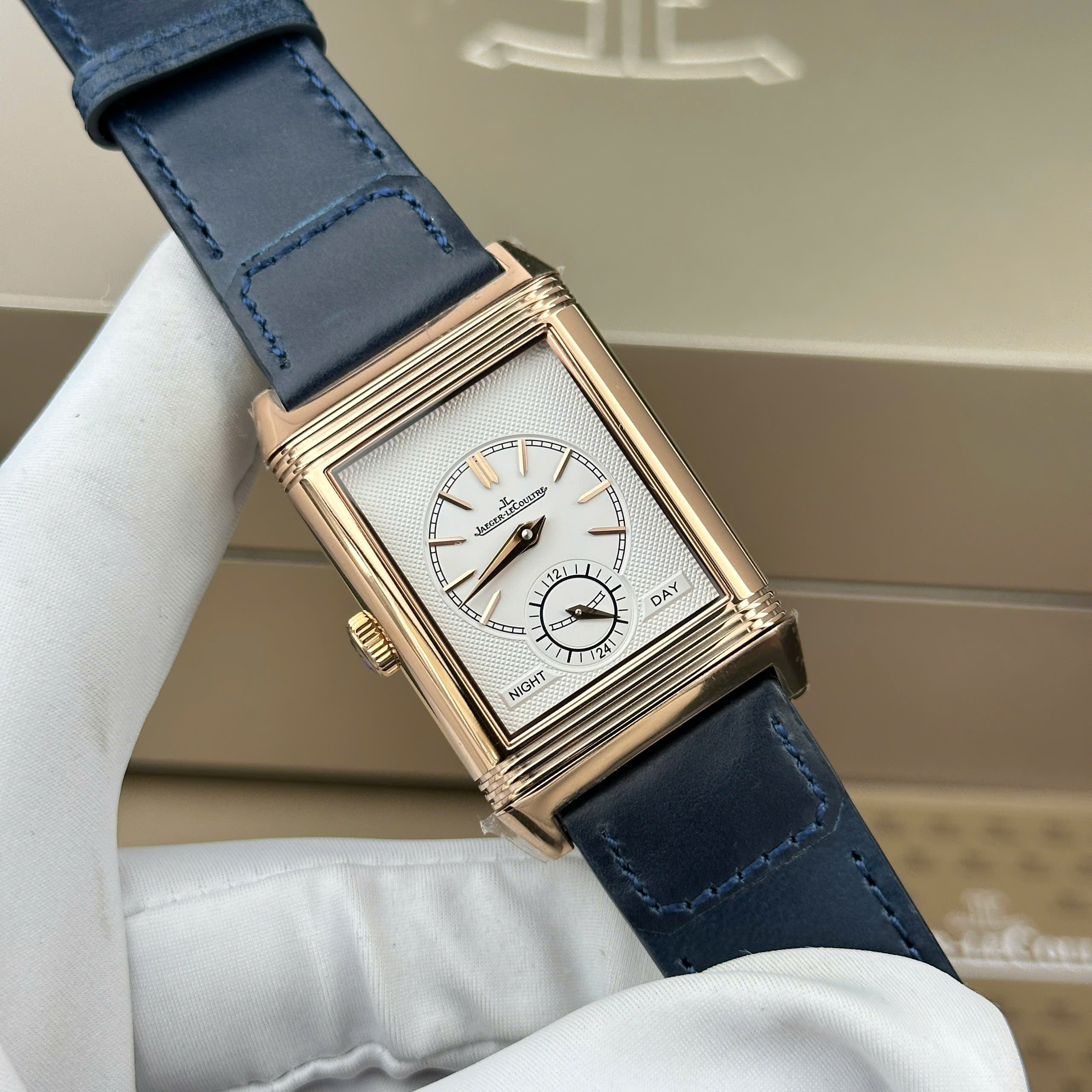 Hãy là người đầu tiên nhận xét “Đồng Hồ Jaeger LeCoultre Master Reverso Tribute Rep 11 Dây Da Xanh MG Factory 45.6×27.4mm”