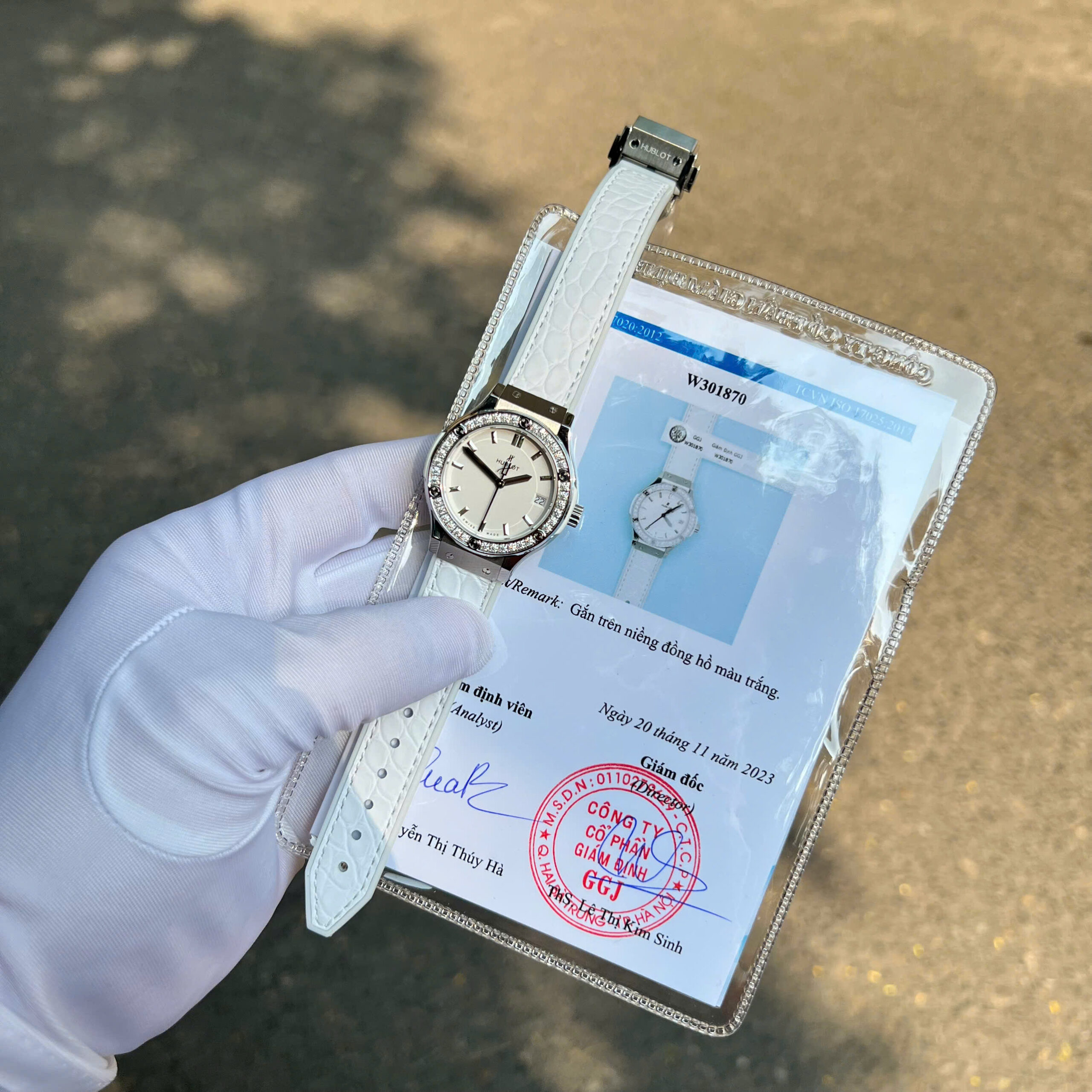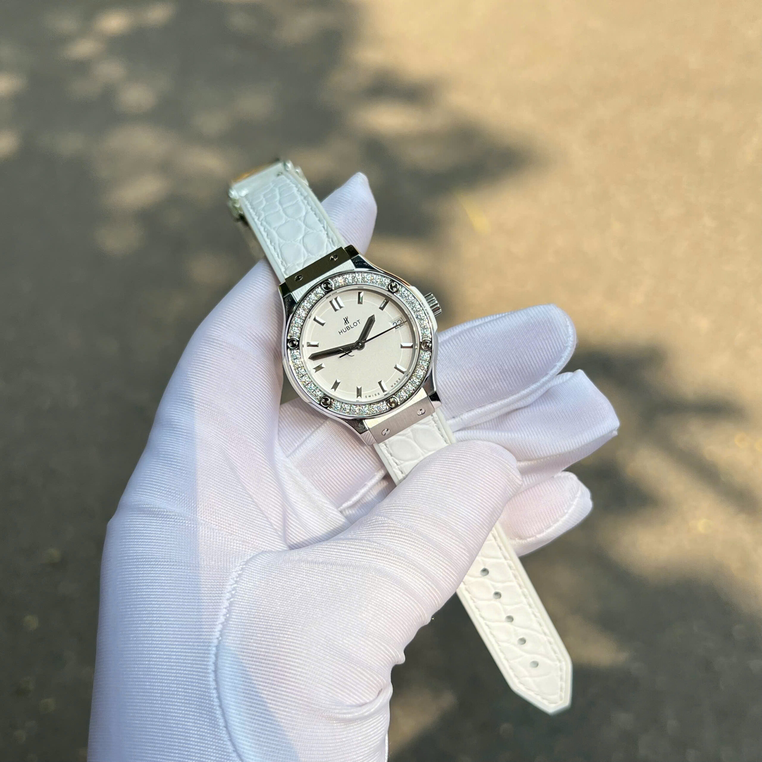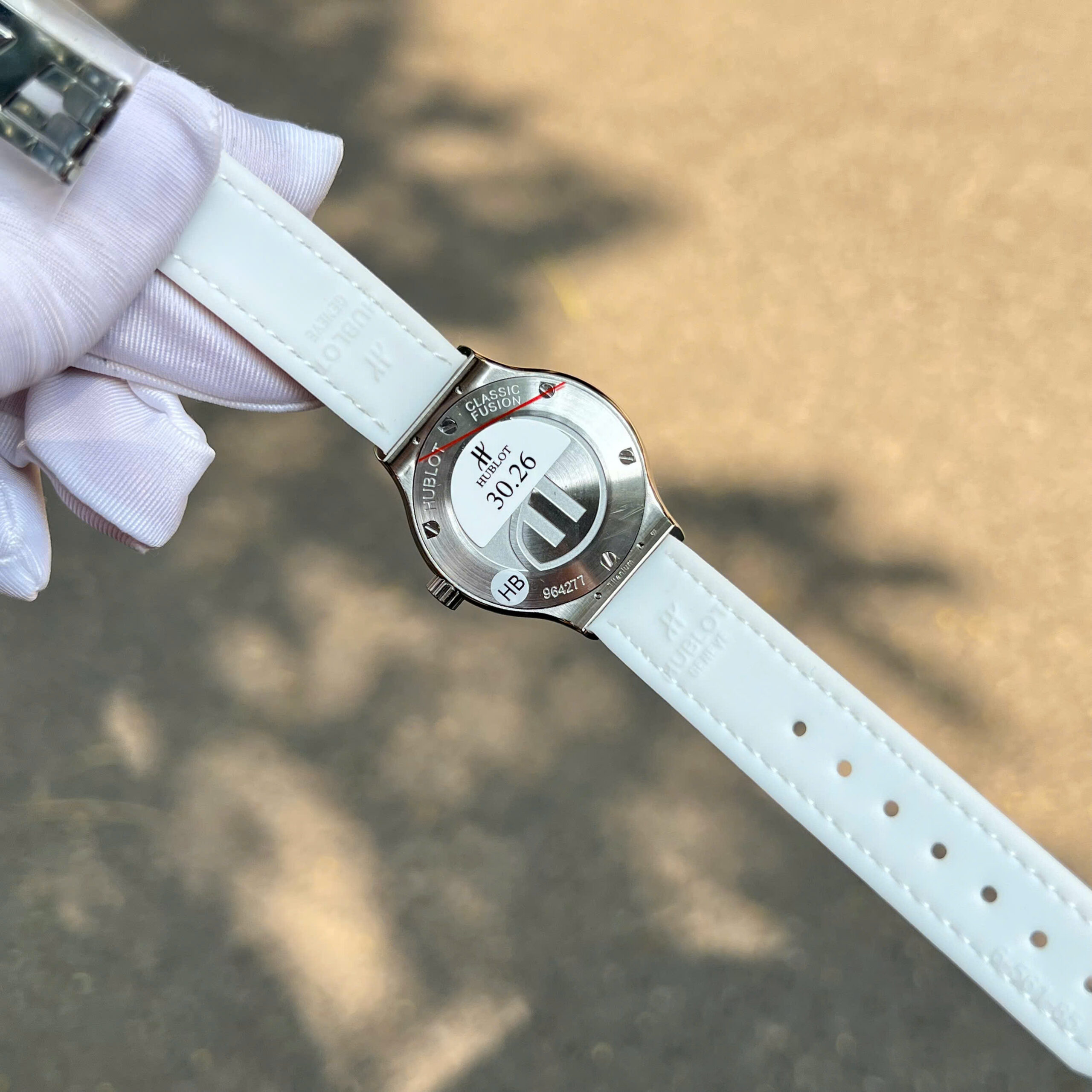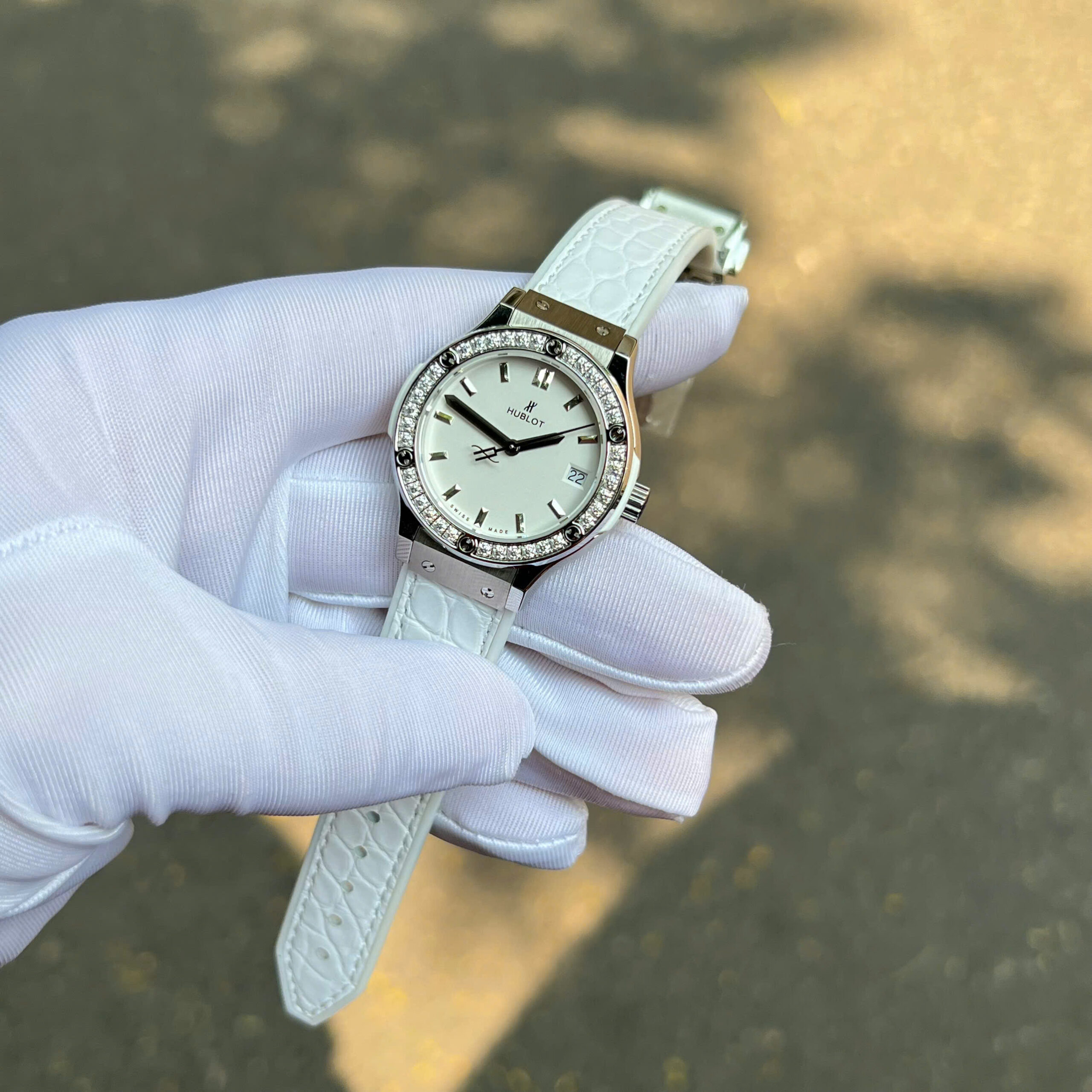 Đồng Hồ Nữ Hublot Classic Fusion Titanium Đính Kim Cương Moissanite Chế Tác Màu Trắng 33mm