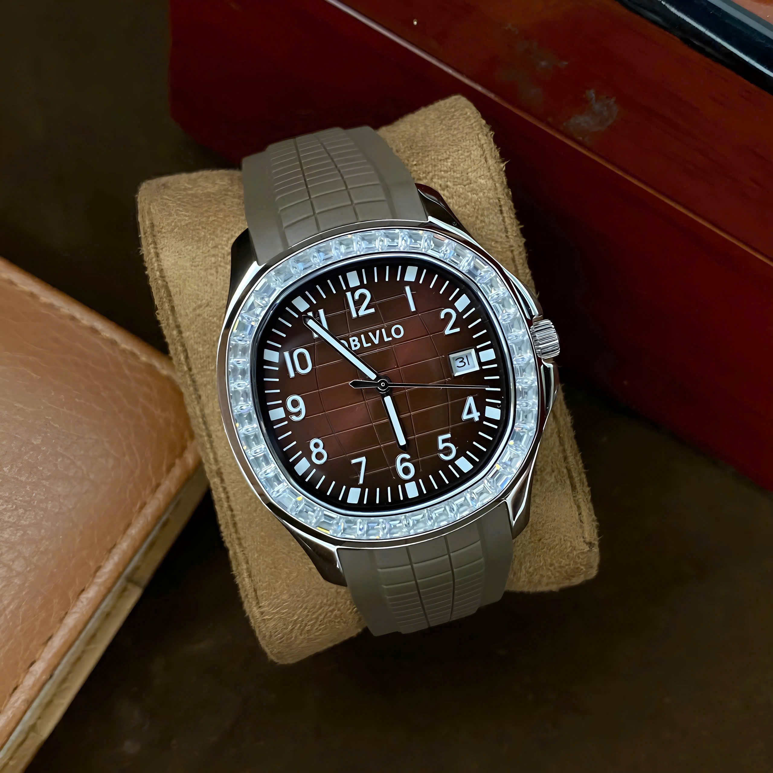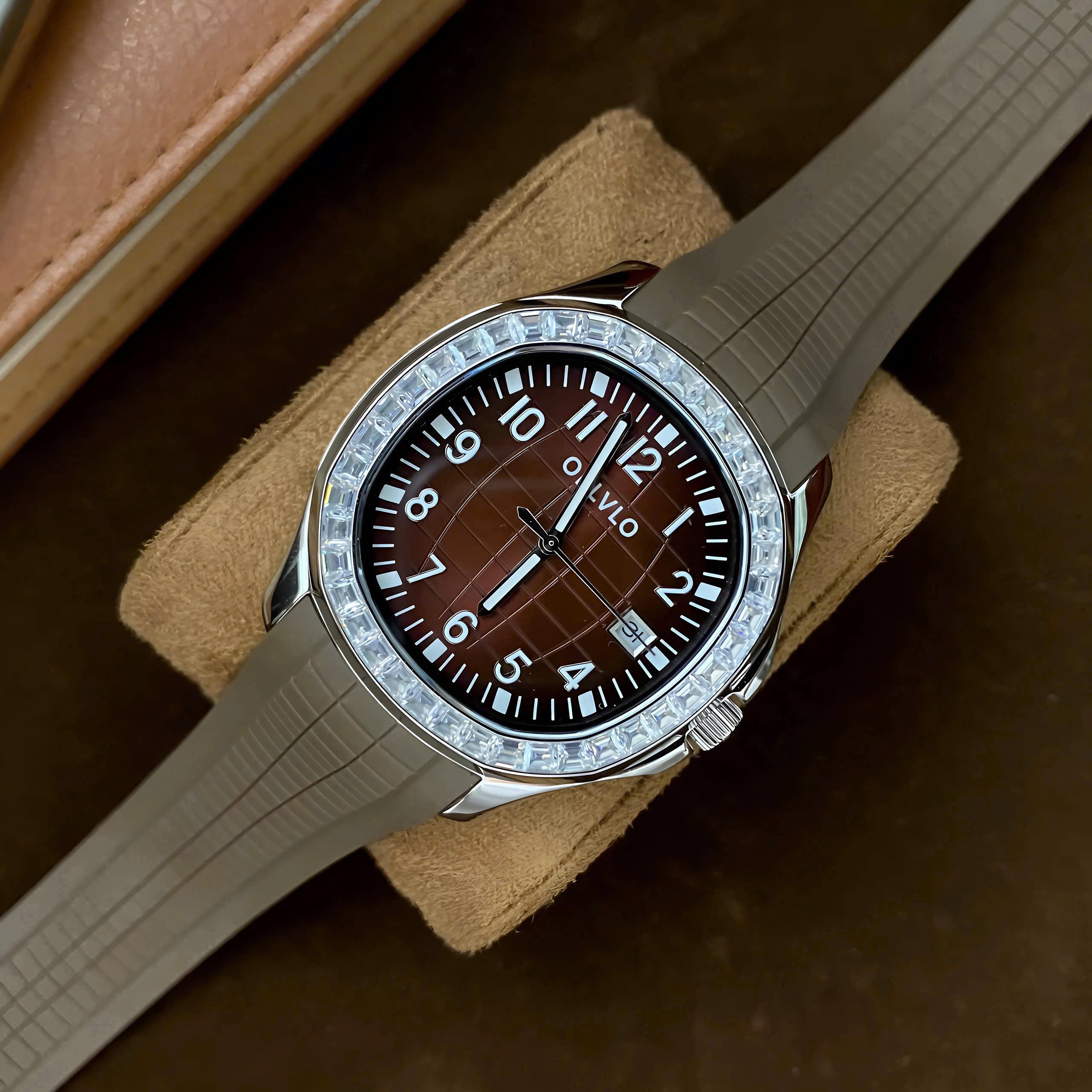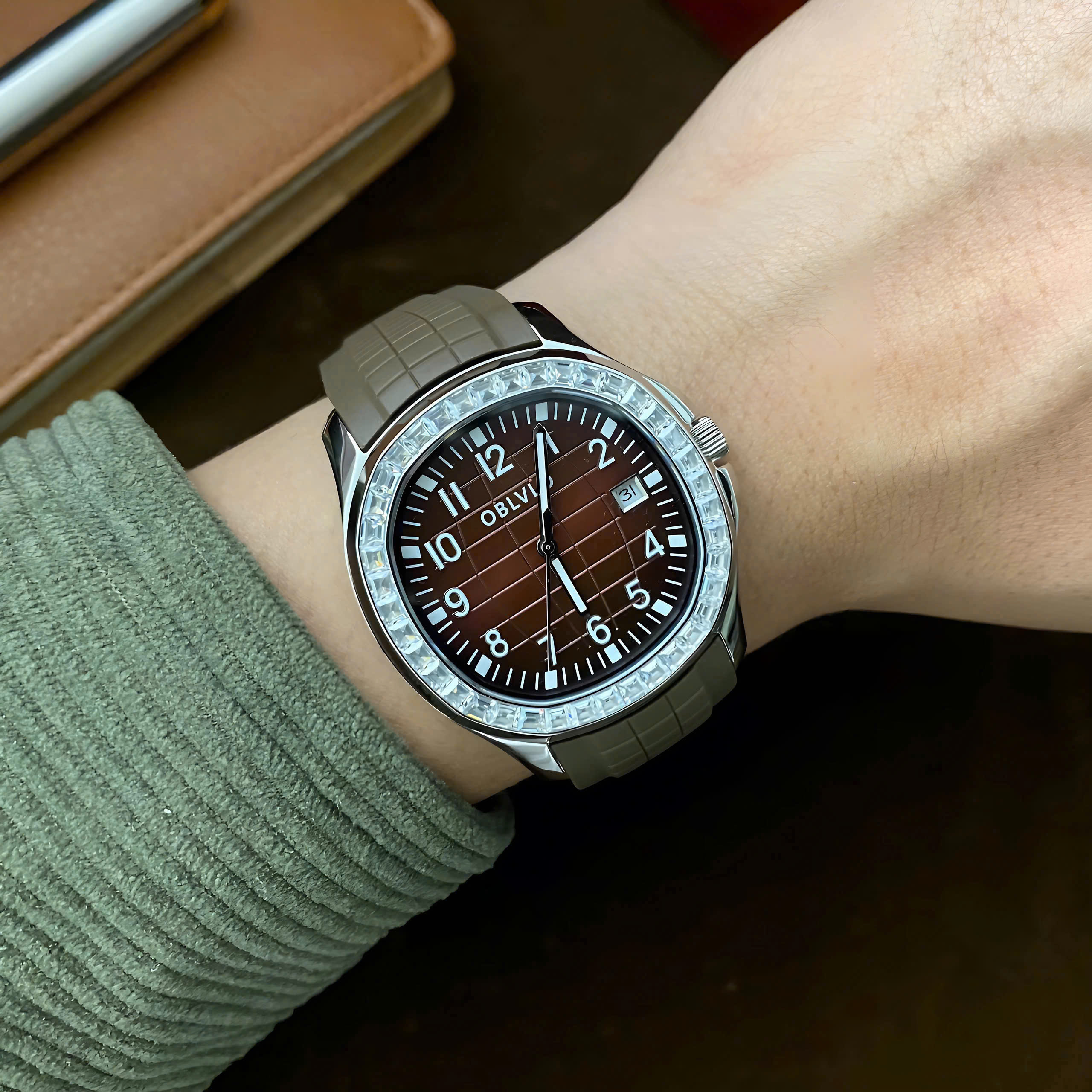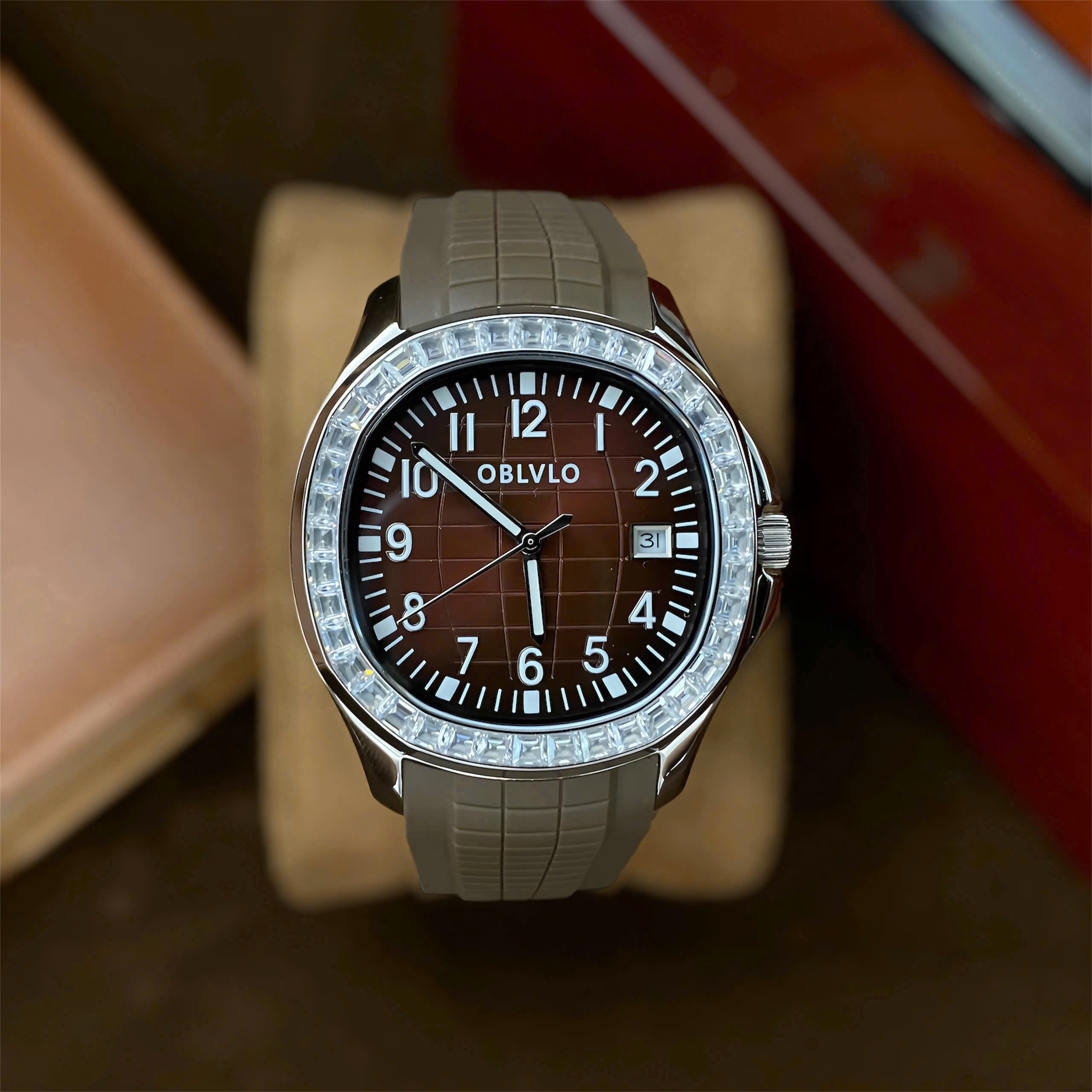 Đồng Hồ Oblvlo FM-SL-YRRR-D Nam Đính Đá Mặt Chocolate Chính Hãng
