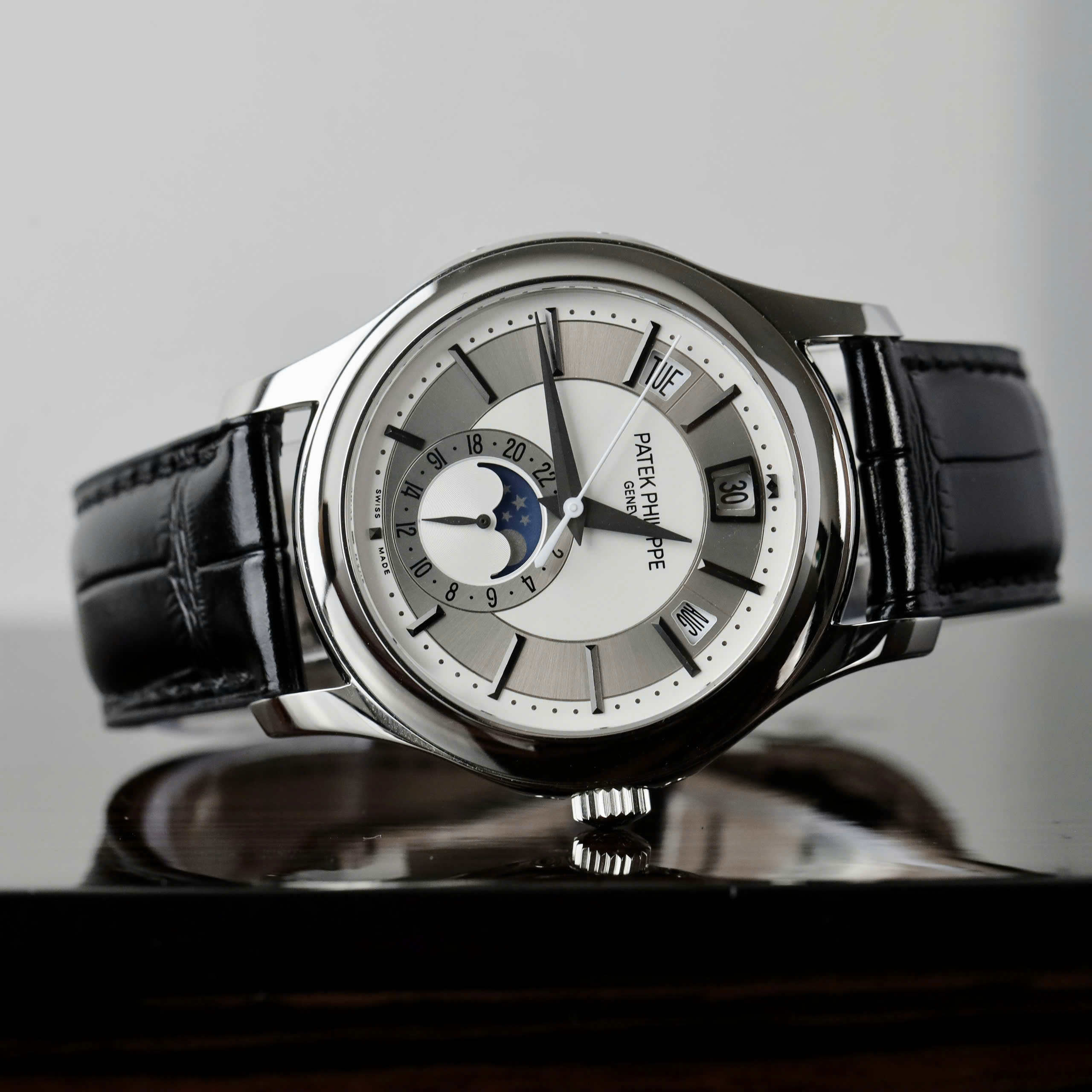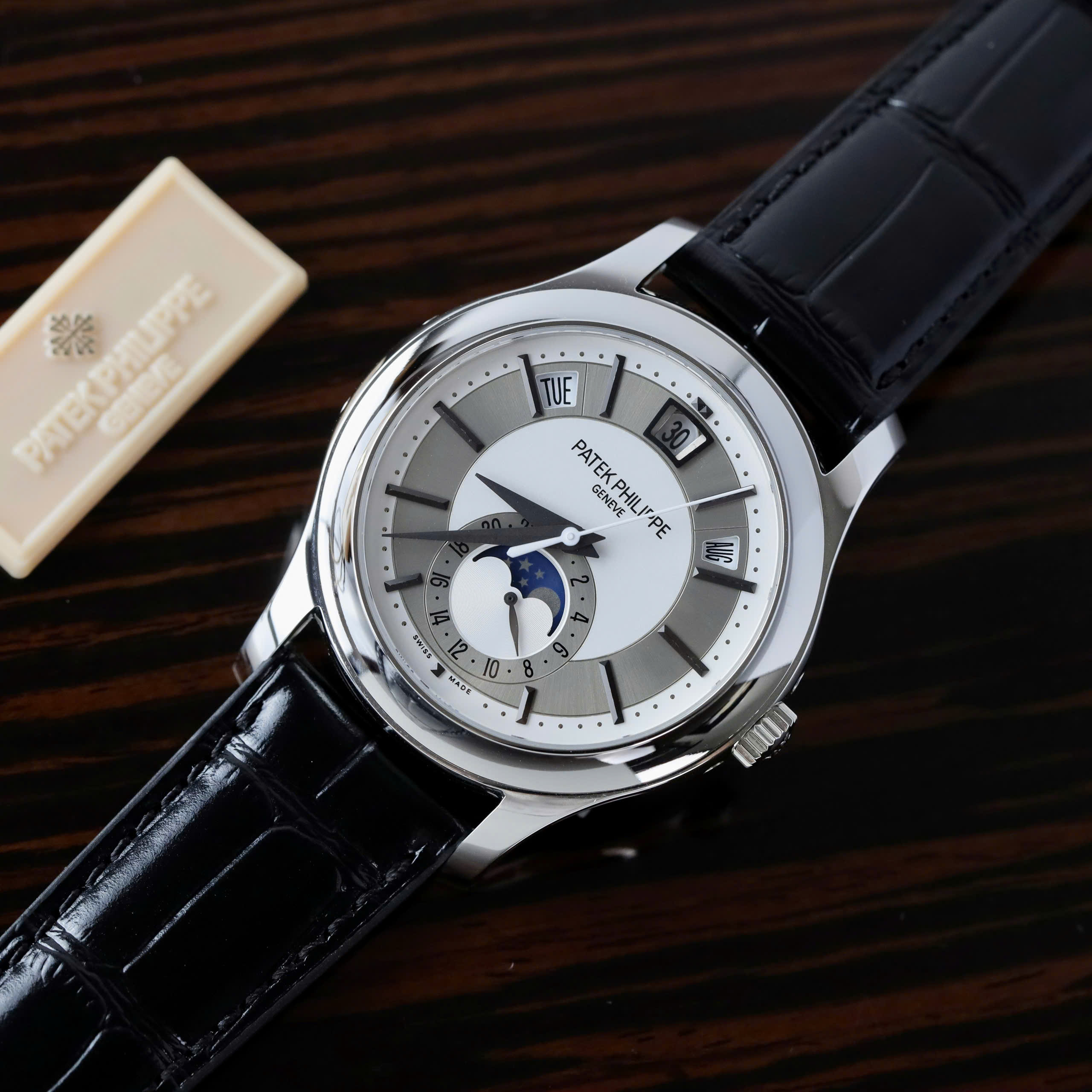 Đồng Hồ Patek Philippe Complications 5205G Replica 11 Mặt Trắng Dây Đen 40mm