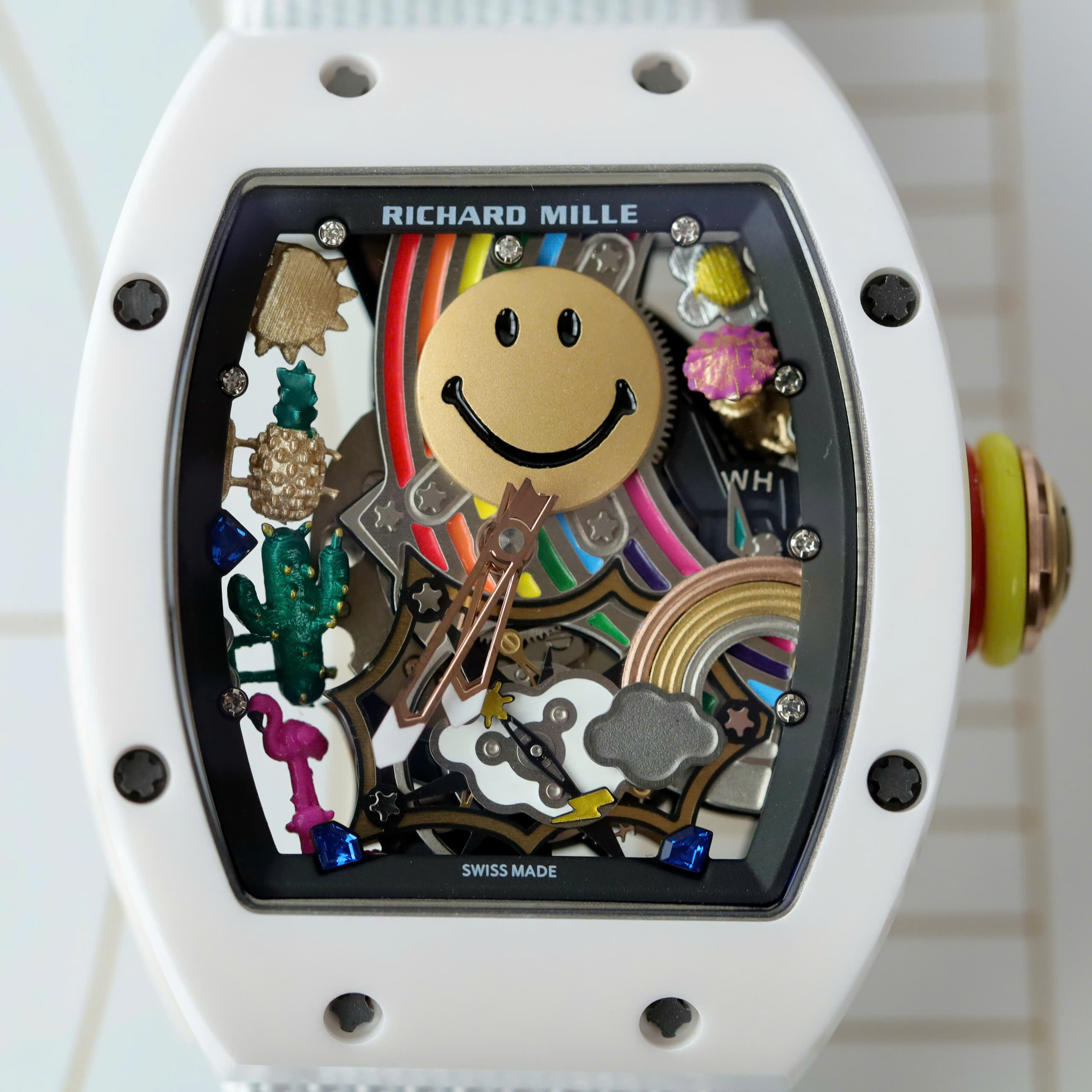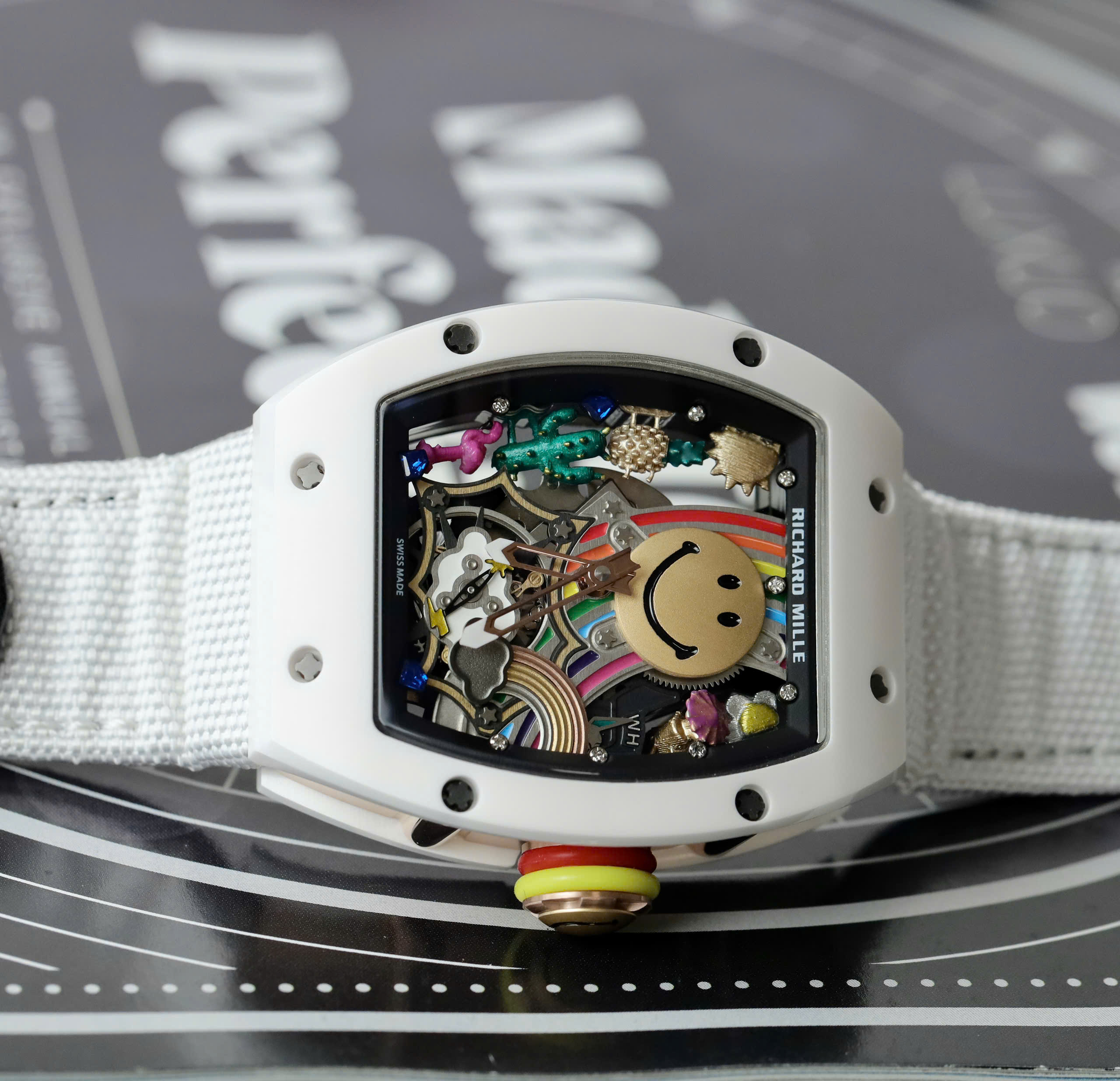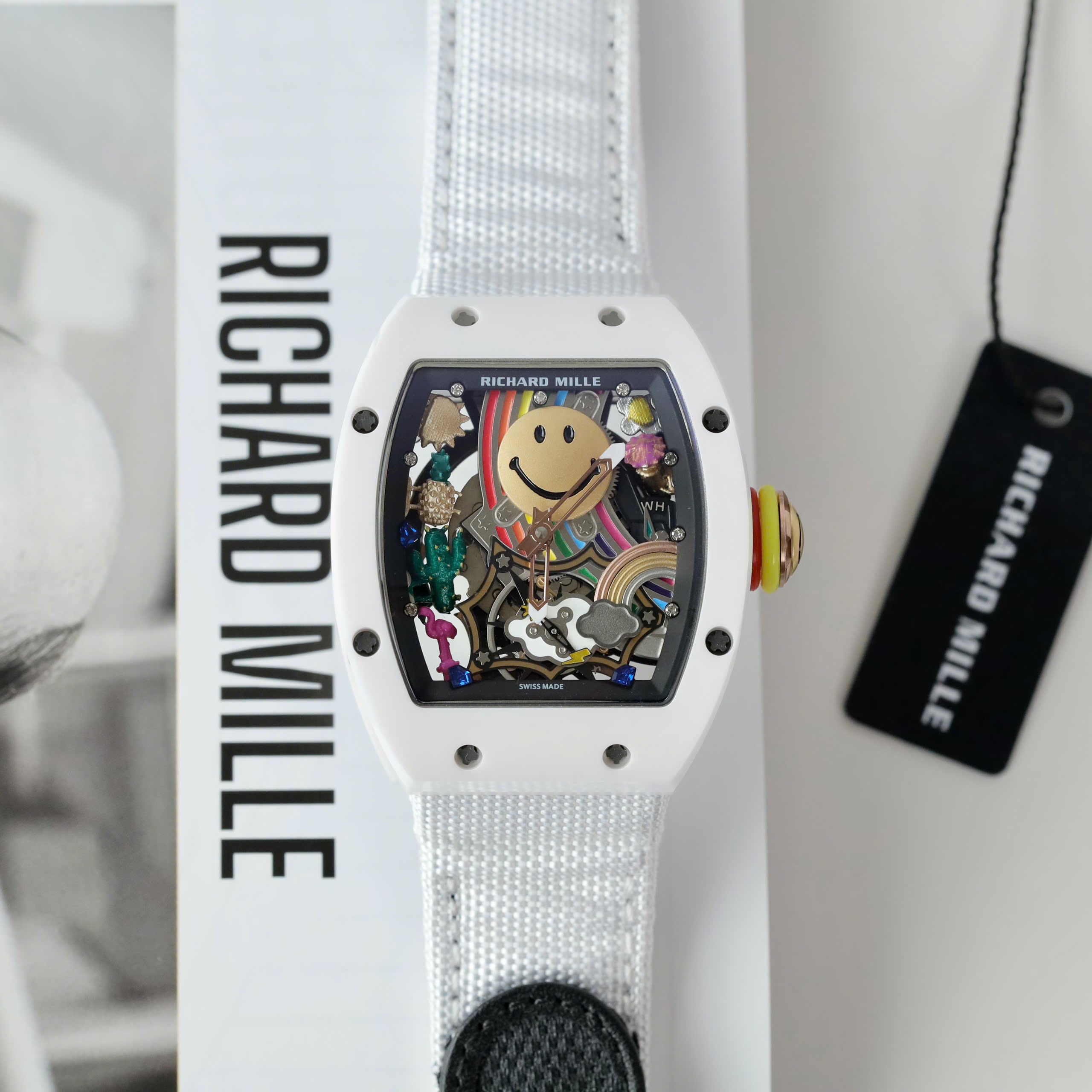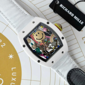 Đồng Hồ Richard Mille RM88 Smiley Mặt Chú Hề Dây Vải Màu Trắng Replica 40mm