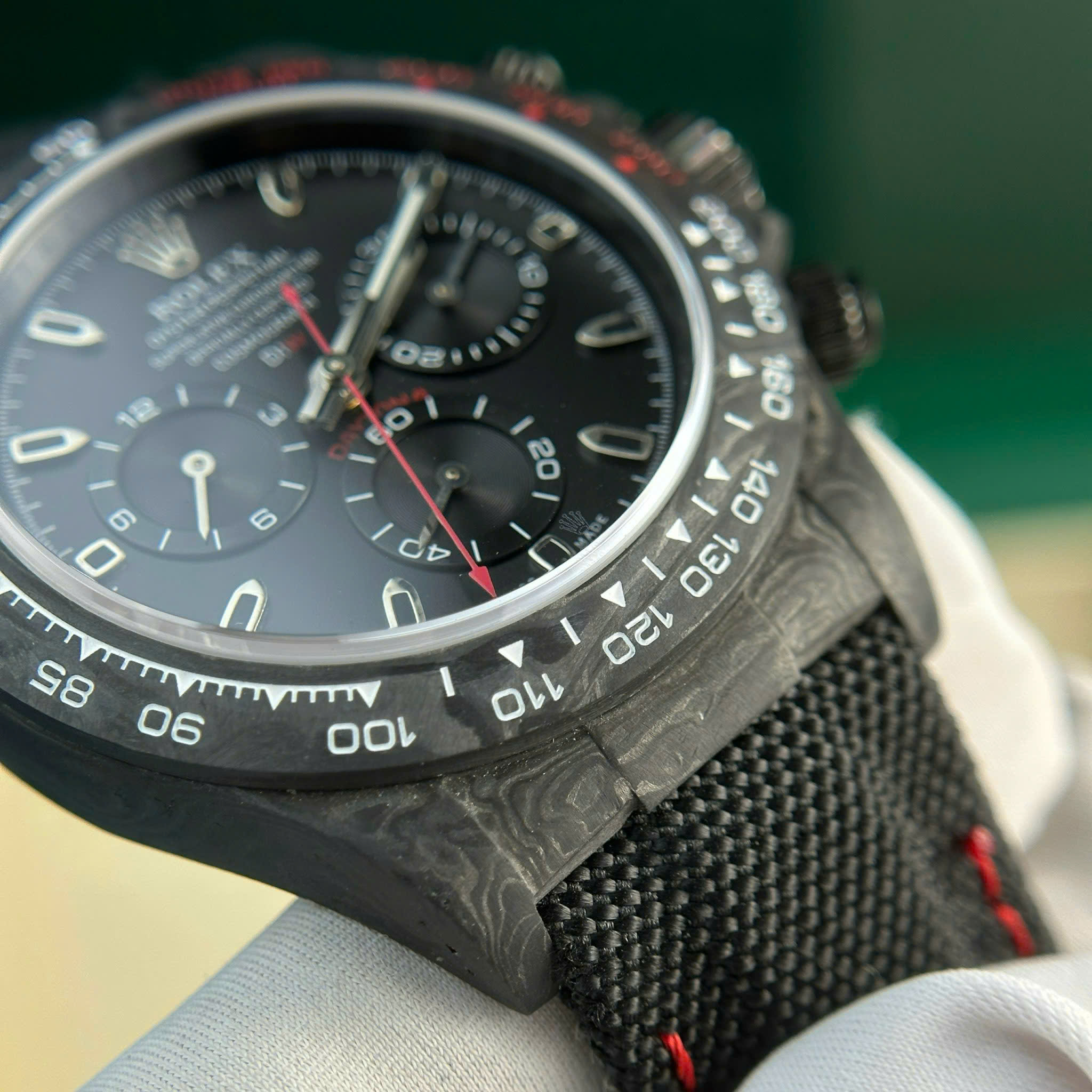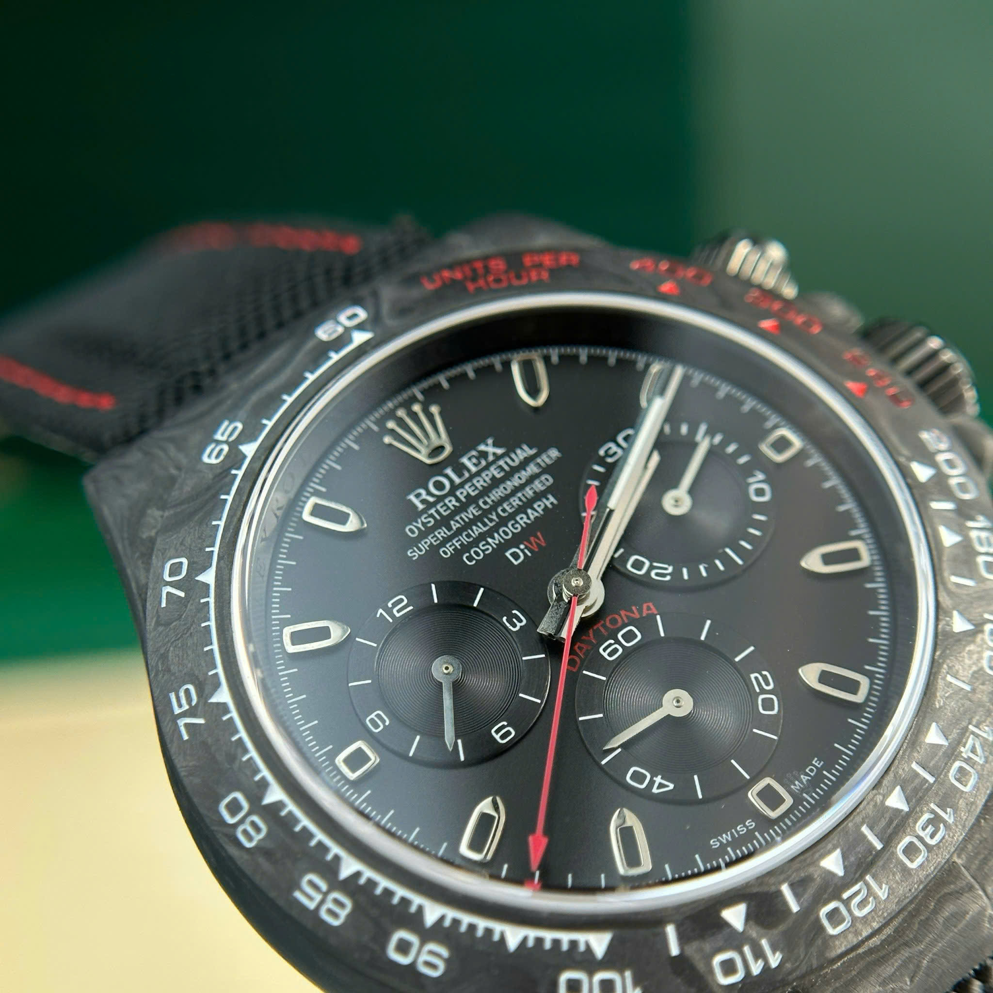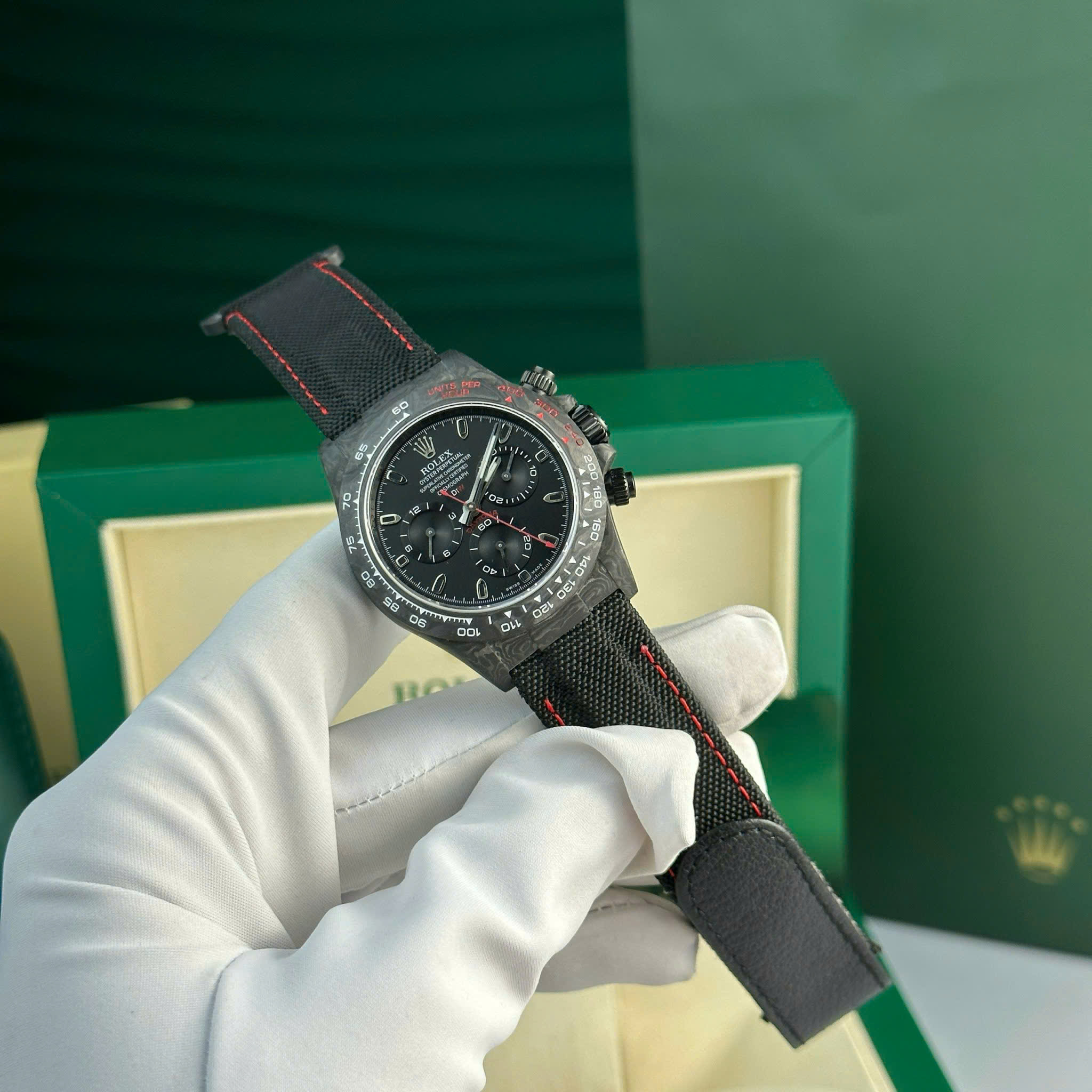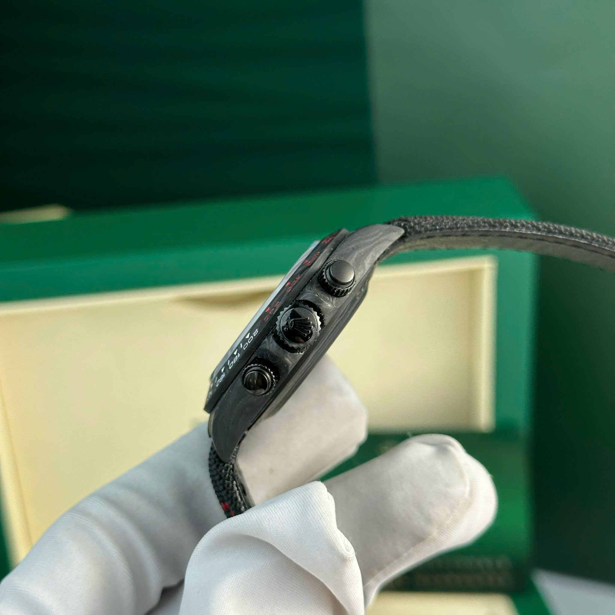 Hãy là người đầu tiên nhận xét “Đồng Hồ Rolex Cosmograph Daytona DiW Chế Tác Carbon Siêu Nhẹ Màu Đen 40mm”