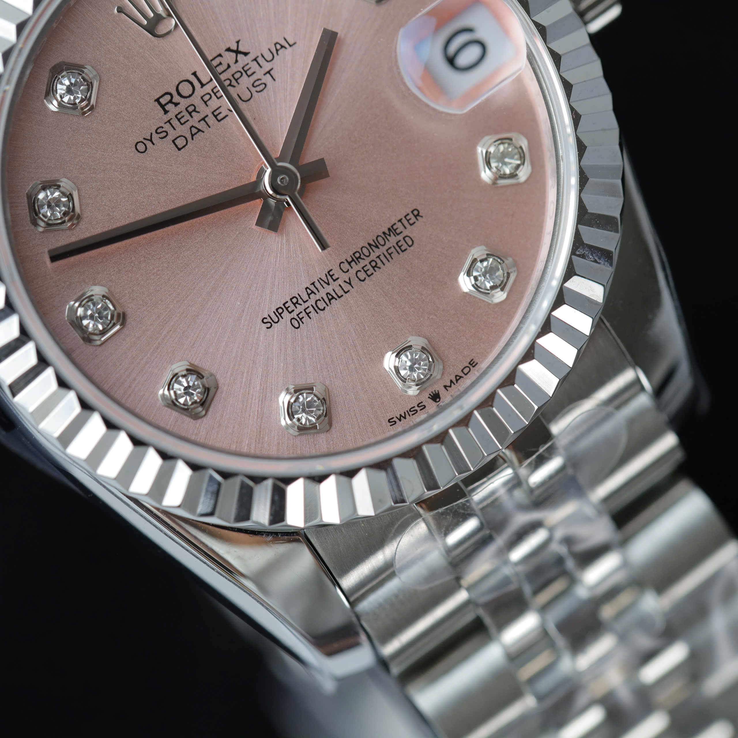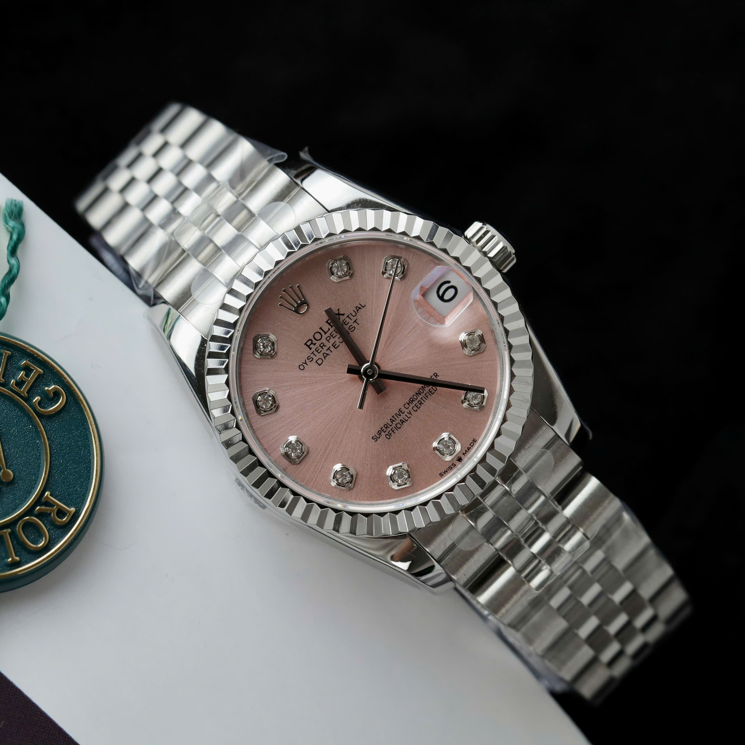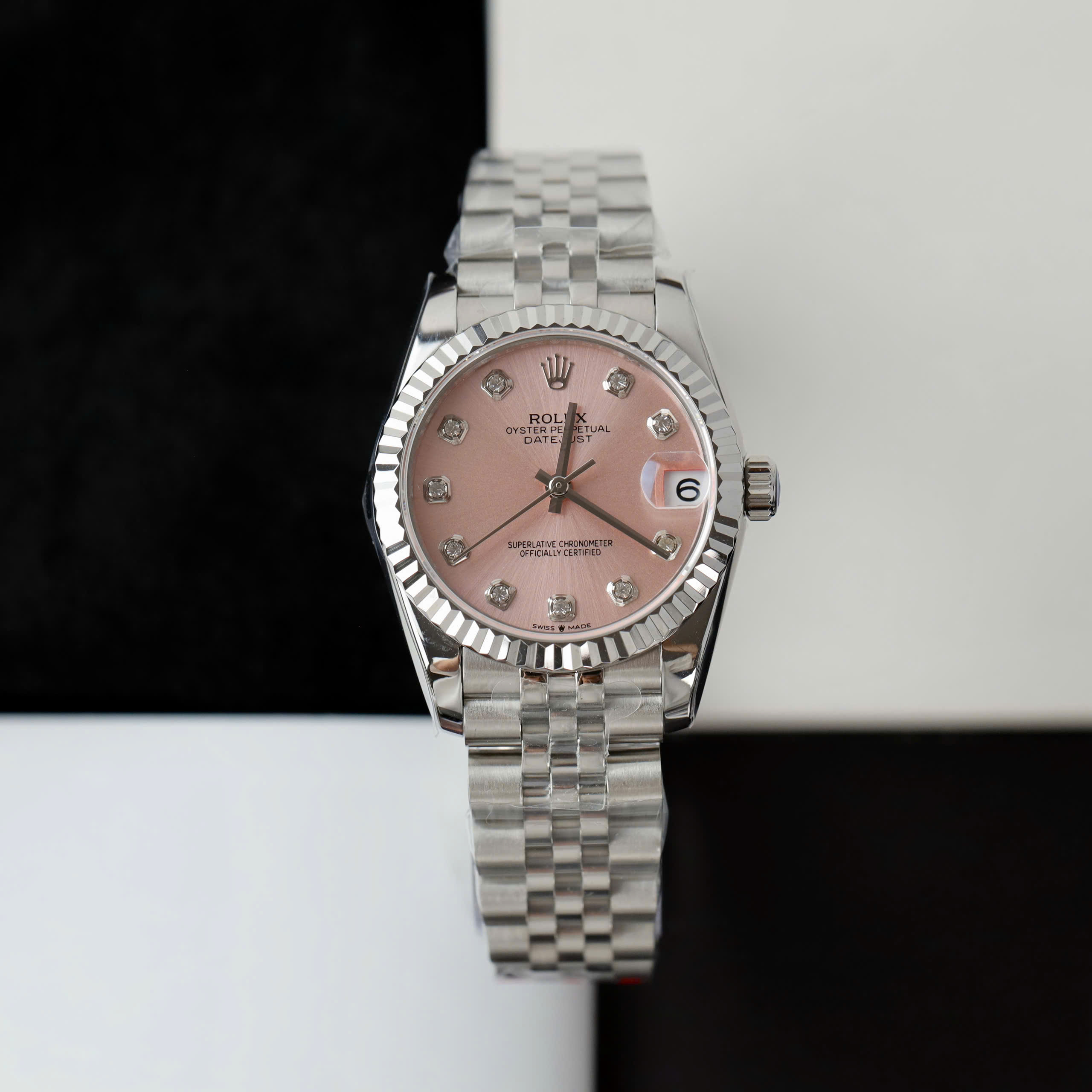 Đồng Hồ Rolex DateJust Nữ Dây Kim Loại Mặt Số Hồng Replica Cao Cấp Xưởng GS 31mm