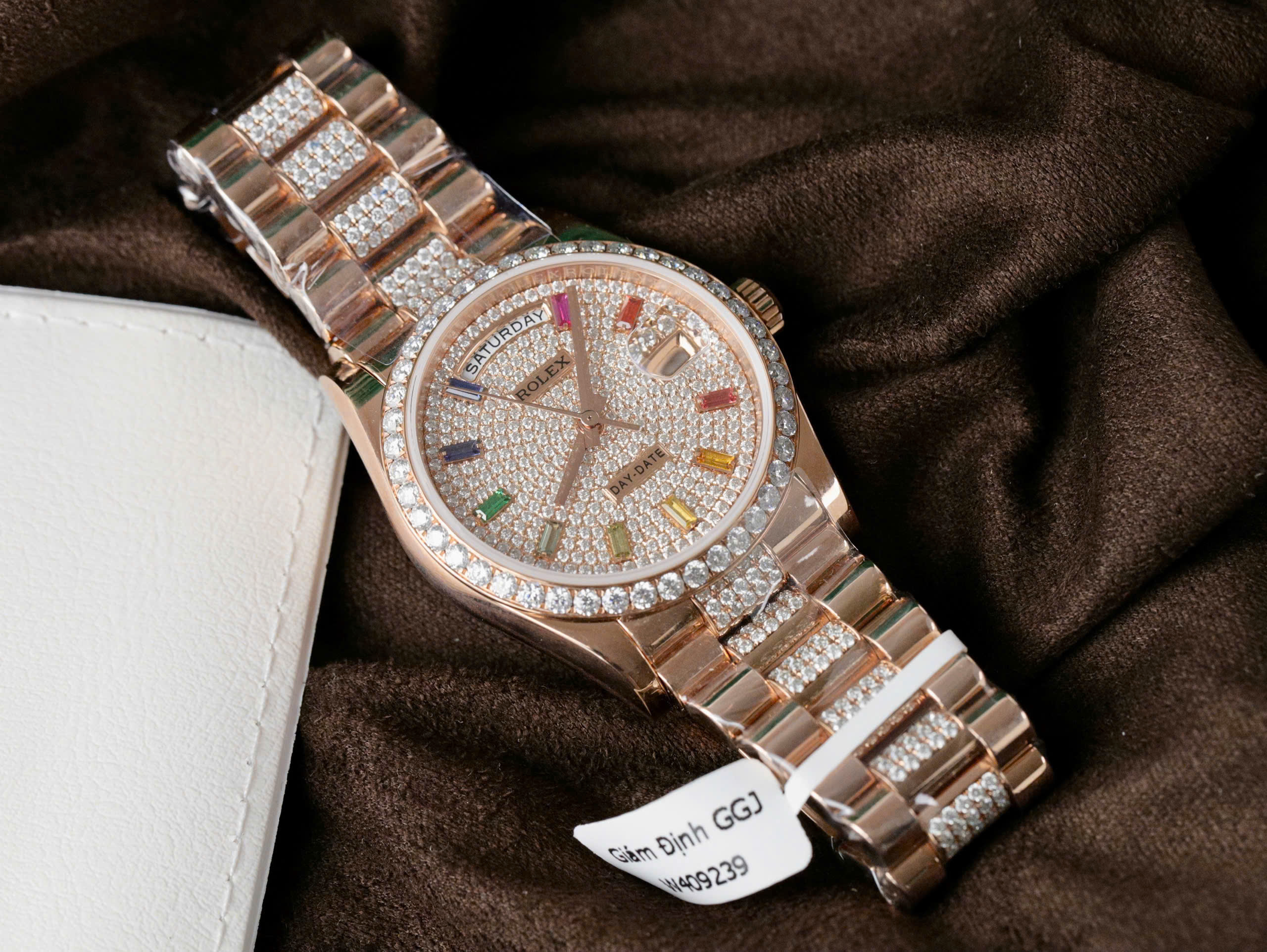 Hãy là người đầu tiên nhận xét “Đồng Hồ Rolex Day-Date 128345 Bọc Vàng 18K Đính Kim Cương Moissanite Chế Tác Hong Kong 36mm”