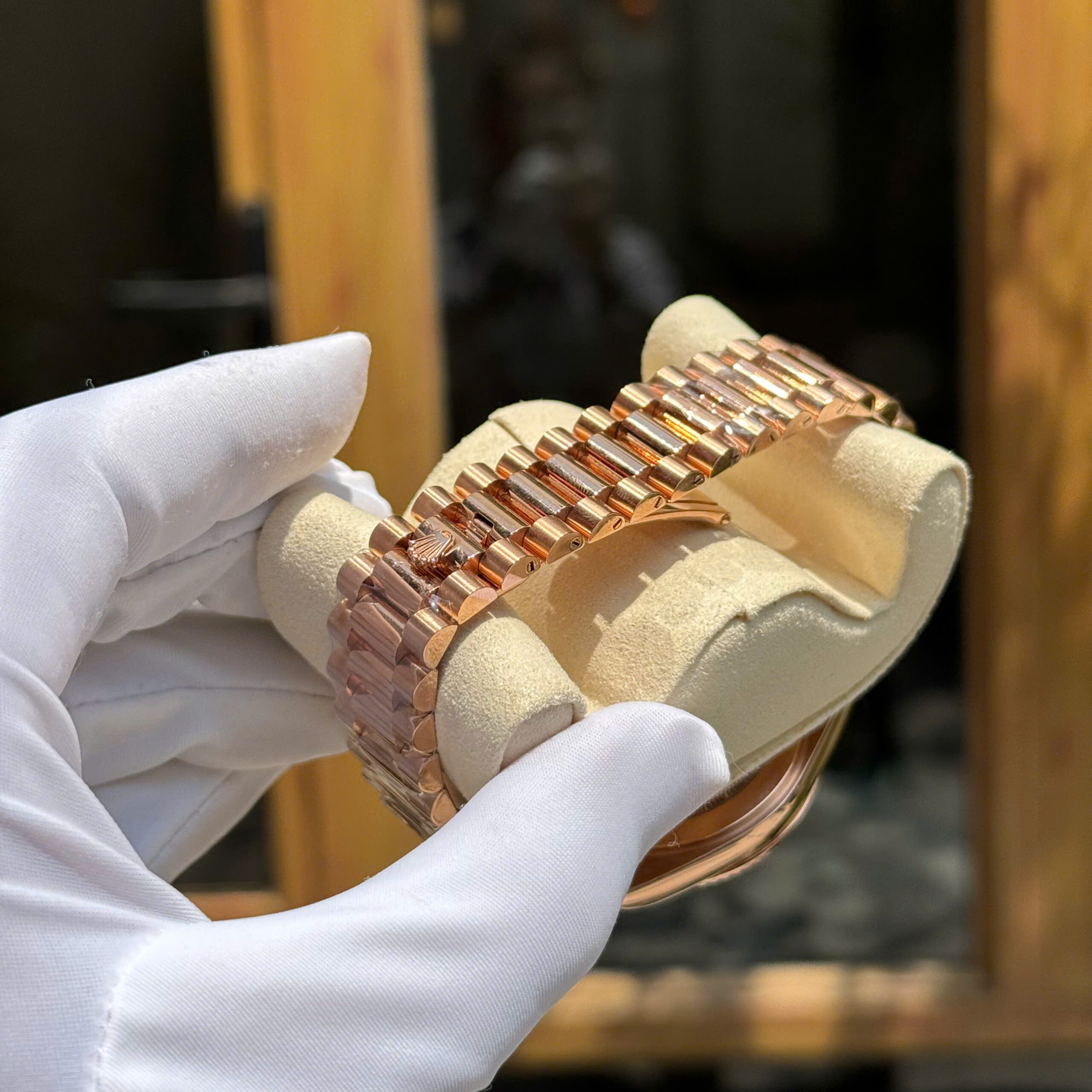 Đồng Hồ Rolex Day-Date 228235 Bọc Vàng Thật Mặt Số Hồng Đính Đá Xưởng GM 40mm