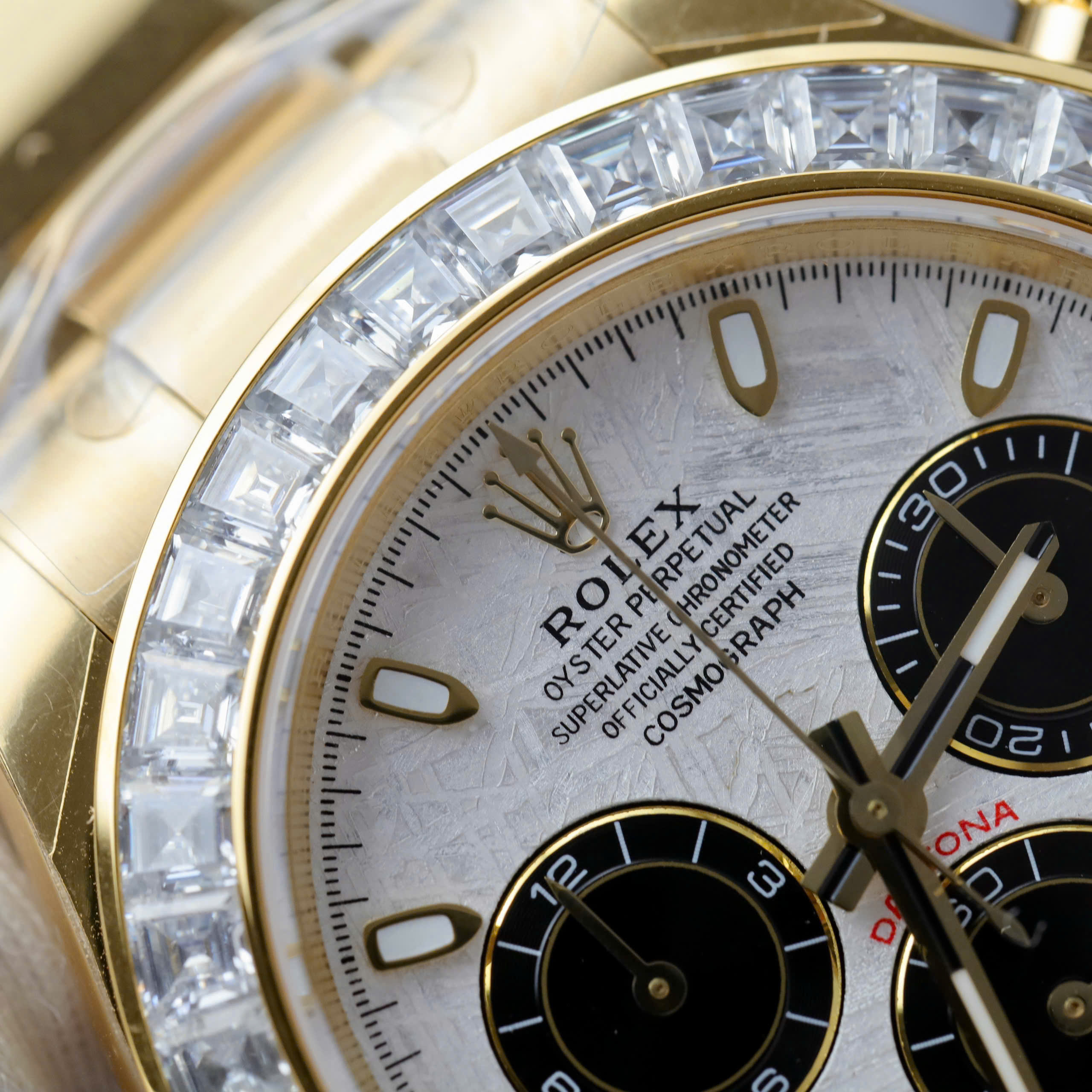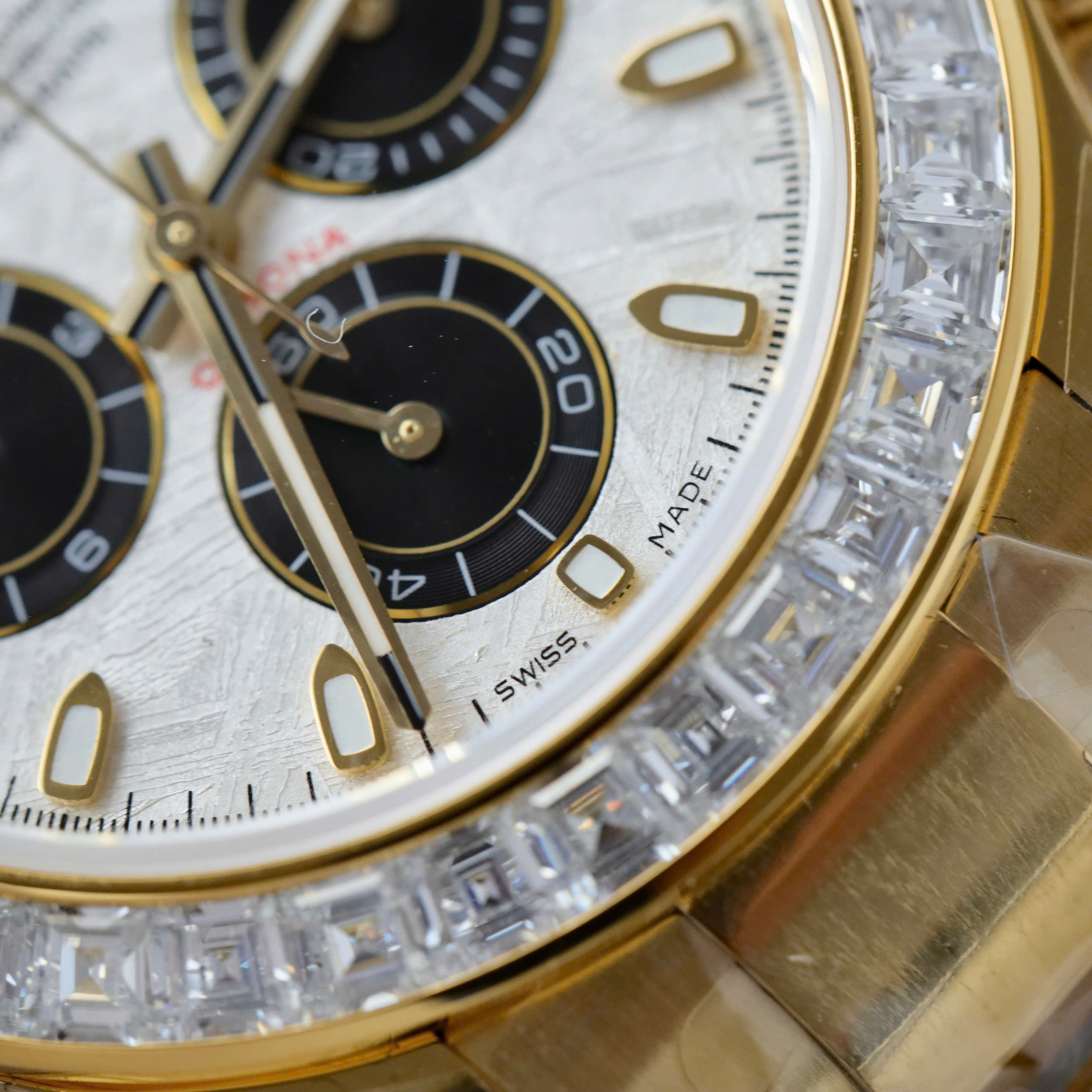 Đồng Hồ Rolex Daytona Bọc Vàng Thật Mặt Số Thiên Thạch Đính Moissanite Baguette 40mm