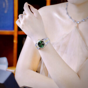 Đồng Hồ Rolex Fake Máy Pin Nhật Đính Đá Dây Kim Loại Mặt Xanh Lá Cây 31mm