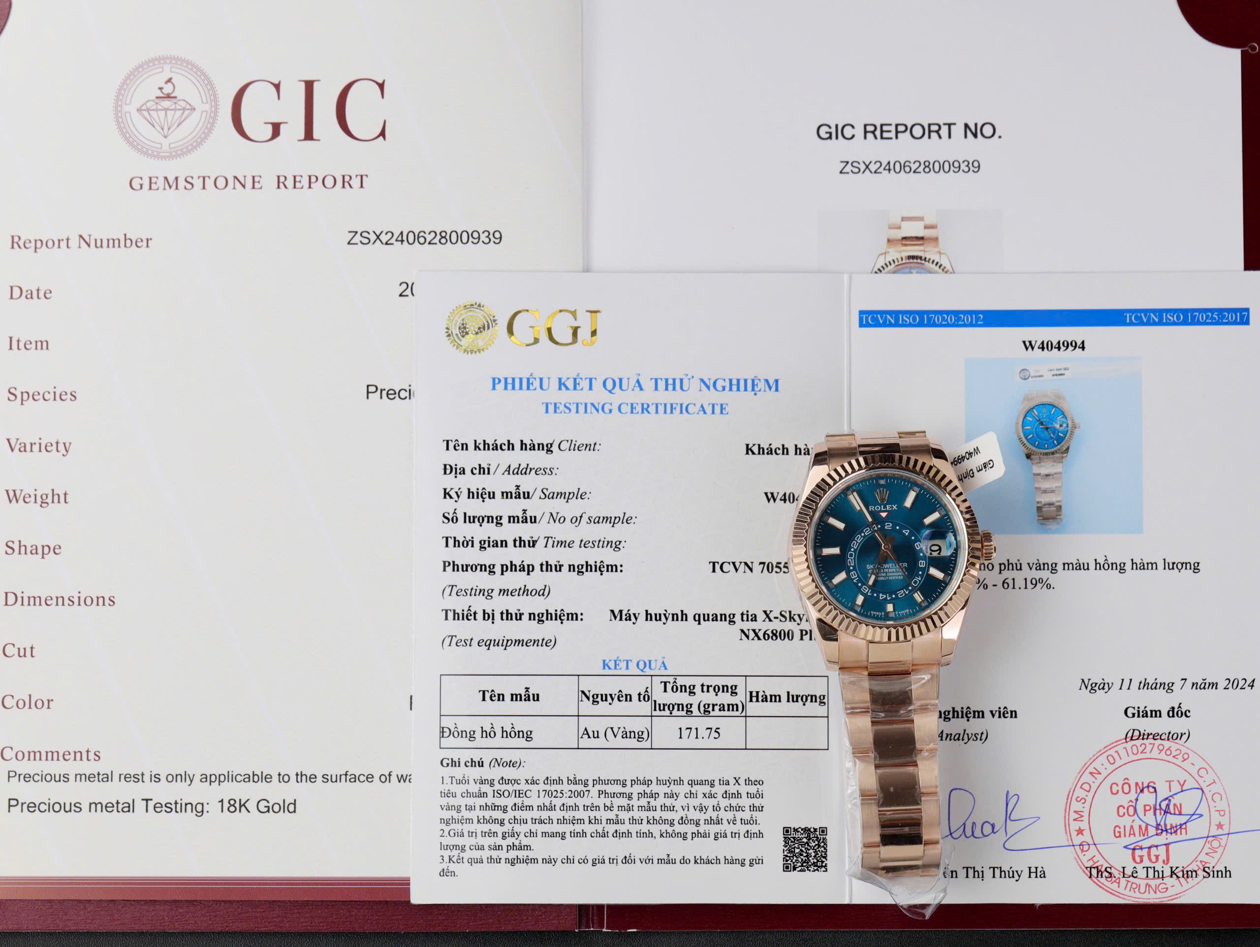 Đồng Hồ Rolex Sky-Dweller 336935 Bọc Vàng 18K Replica Cao Cấp Mặt Xanh 42mm