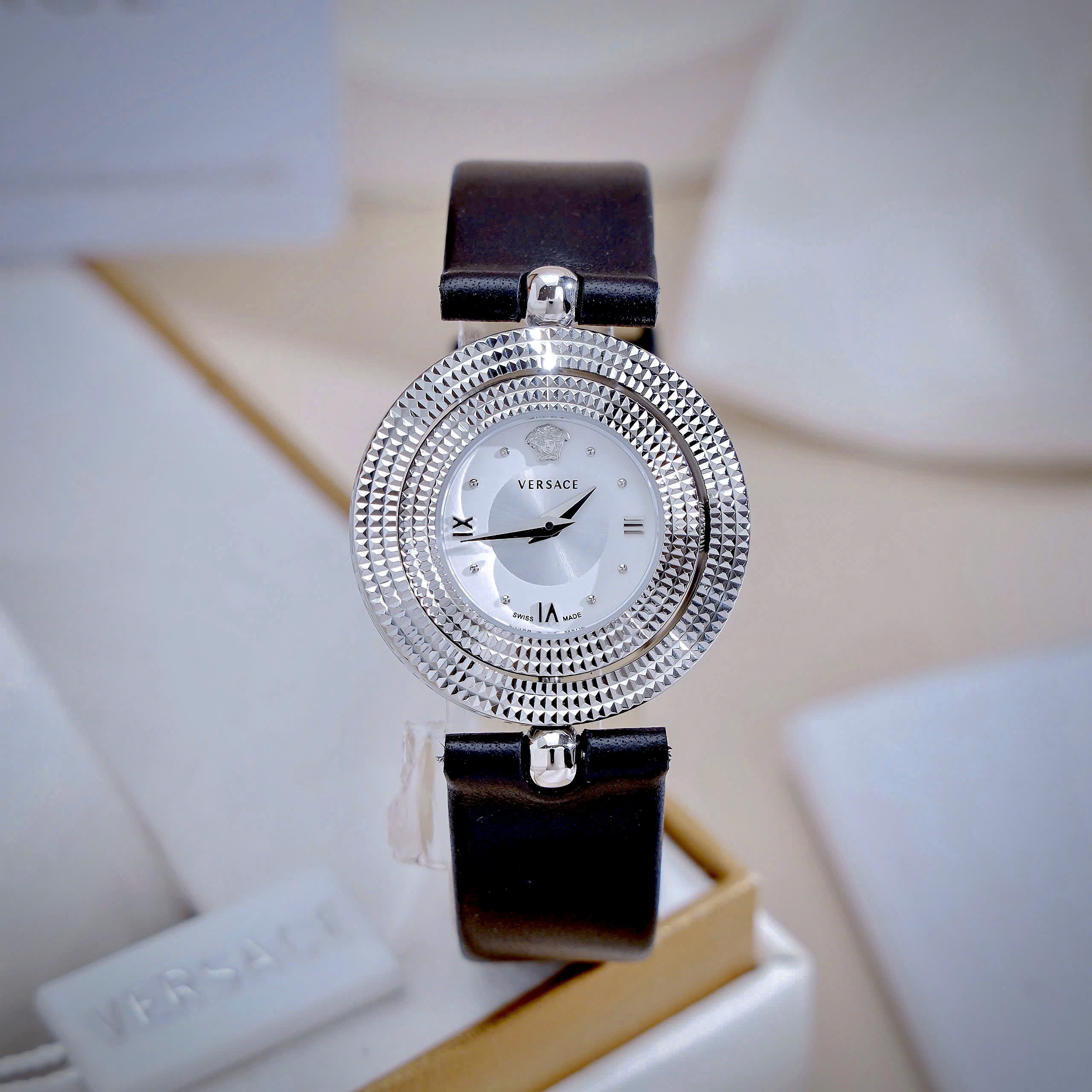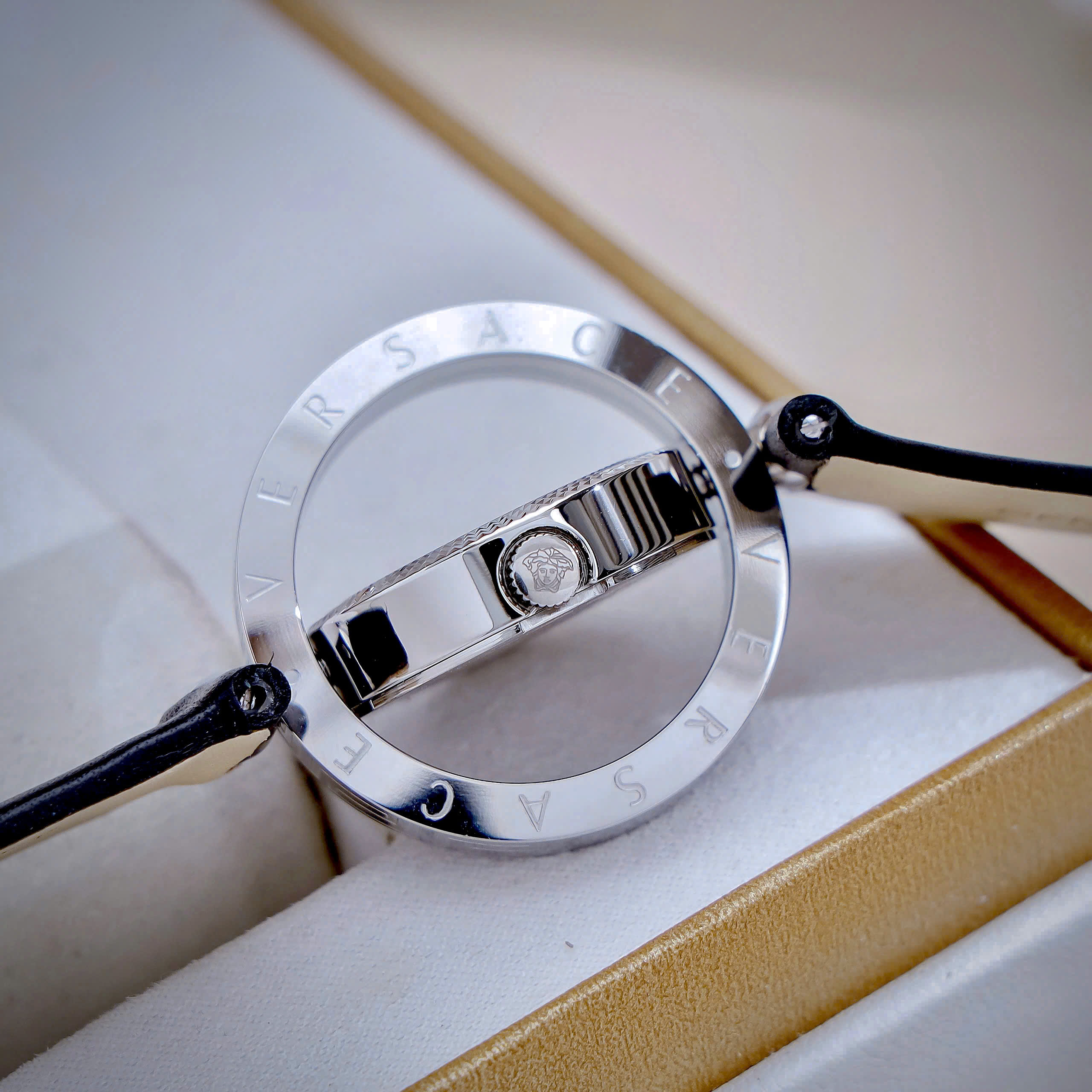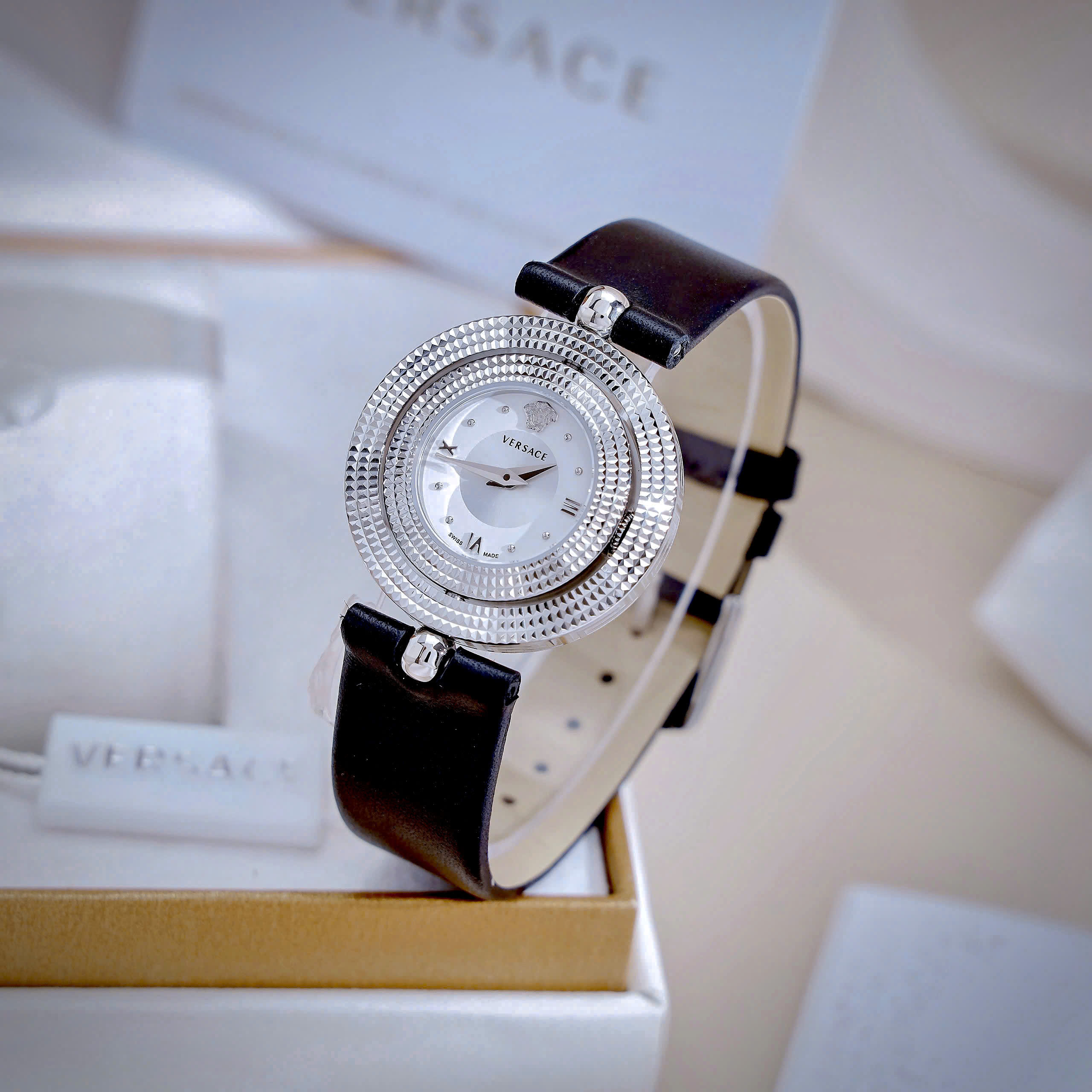 Đồng Hồ Versace Eon Mặt Xoay 360 Độ Nữ Dây Da Màu Đen Mặt Trắng Like Auth 30mm