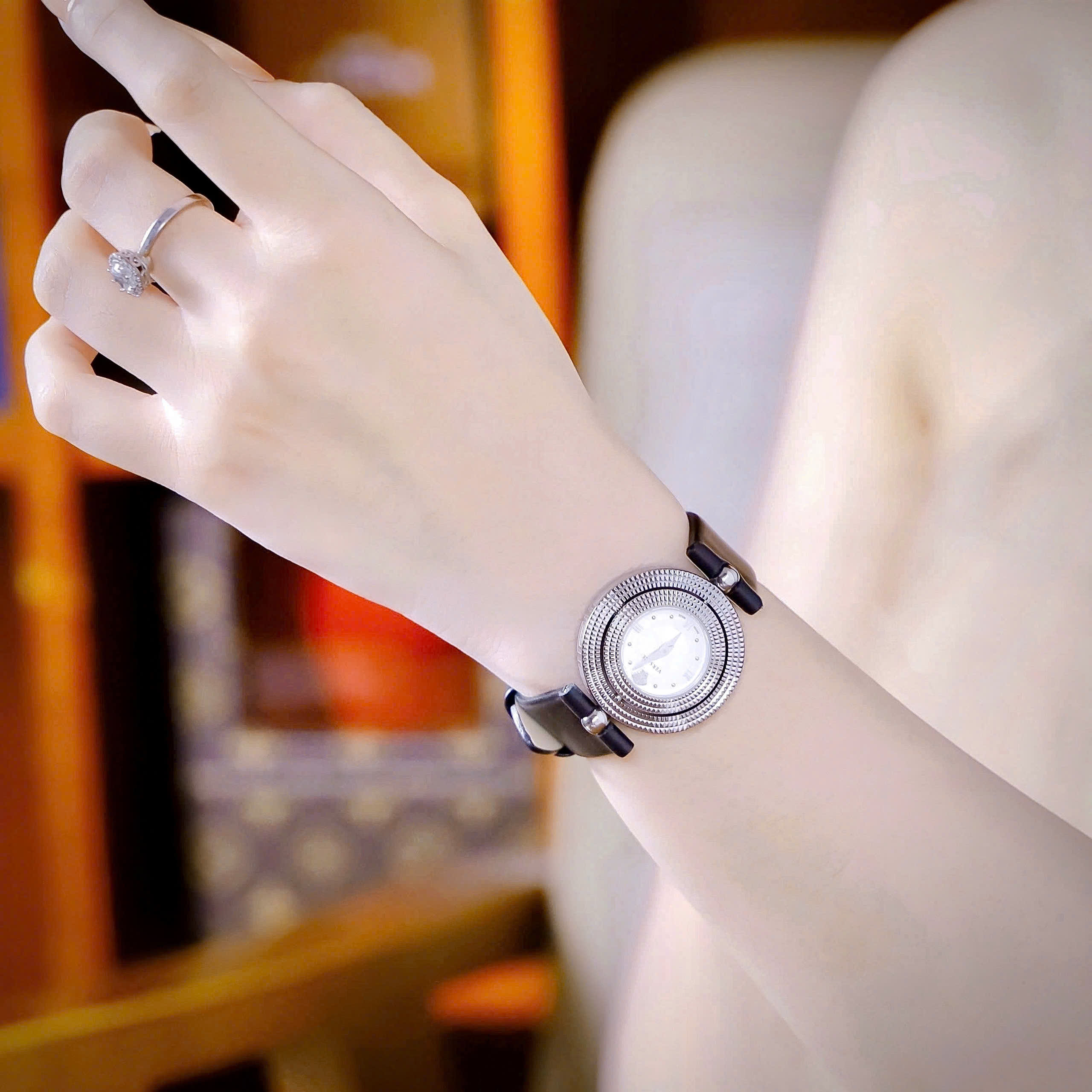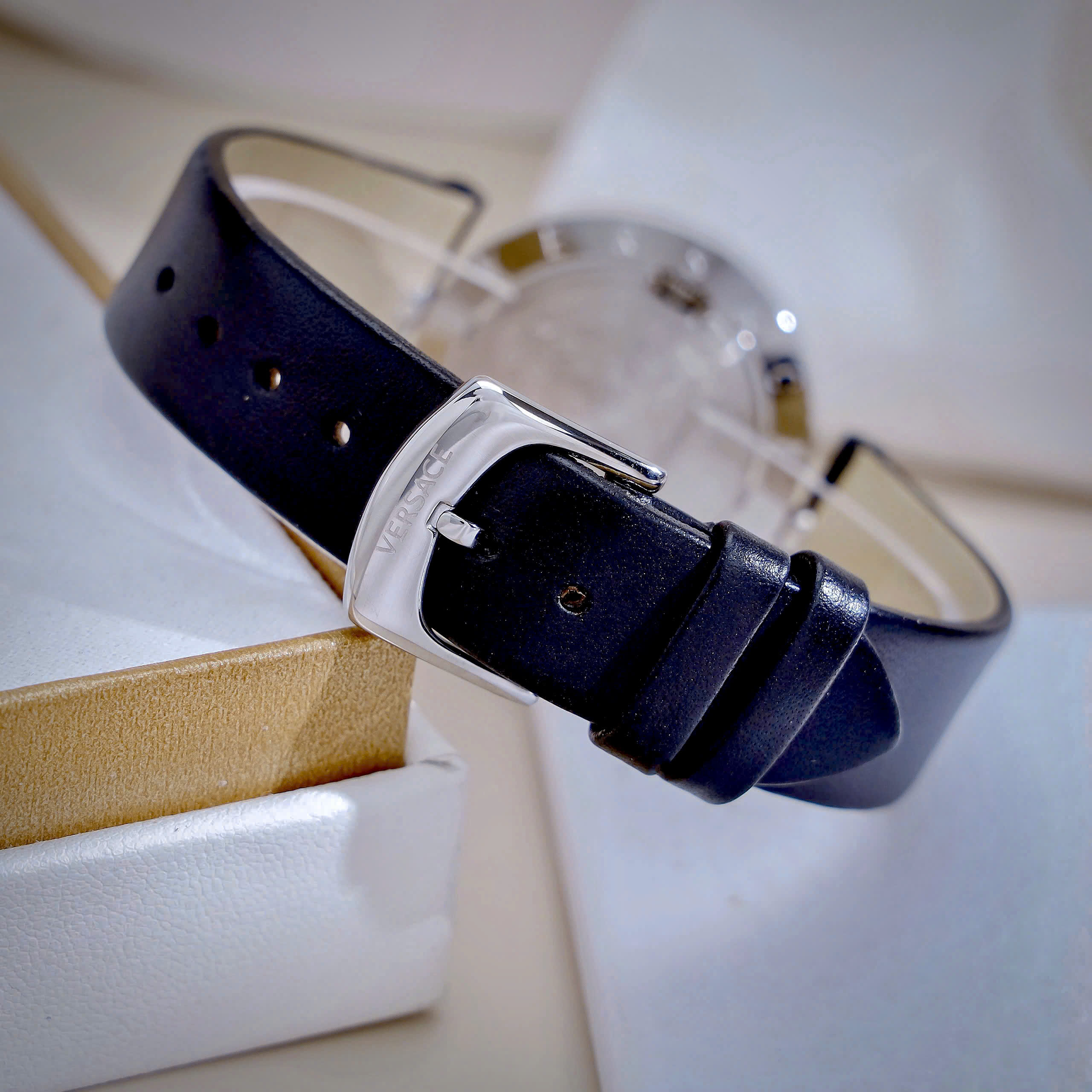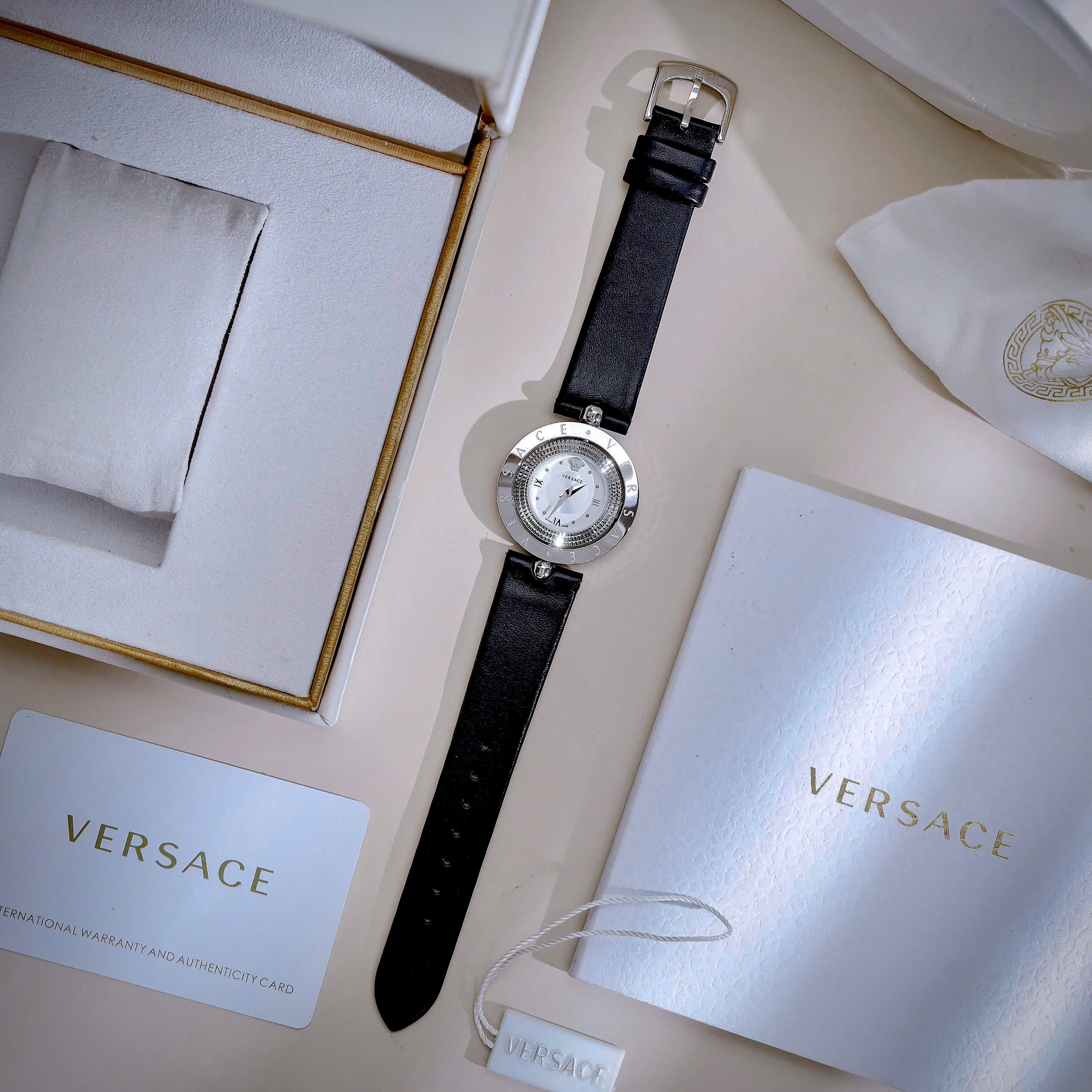 Đồng Hồ Versace Eon Mặt Xoay 360 Độ Nữ Dây Da Màu Đen Mặt Trắng Like Auth 30mm