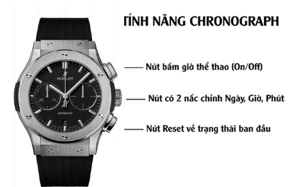 Hublot Chronograph watches (often called 6-hand watches) are complex machines with an integrated sports stopwatch function (Chronograph function). Using and setting the time on this type of Hublot watch is not too difficult if you understand the role of each component.