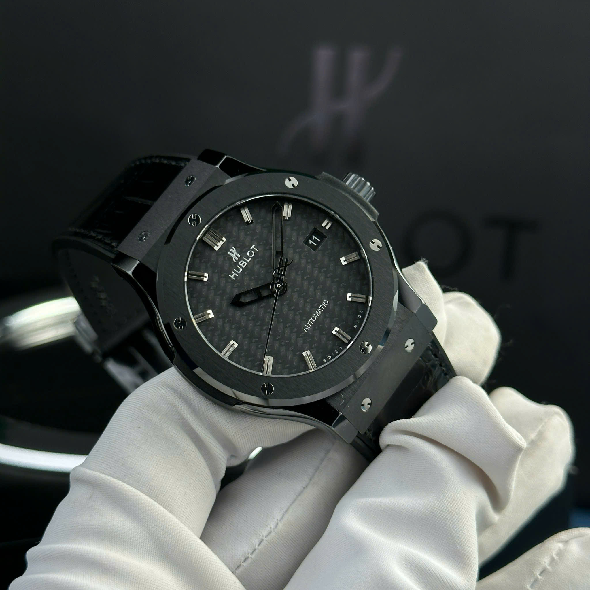 Hublot Classic Fusion Ceramic Black Carbon Dial Best Replica Watches JJZ Factory 42mm