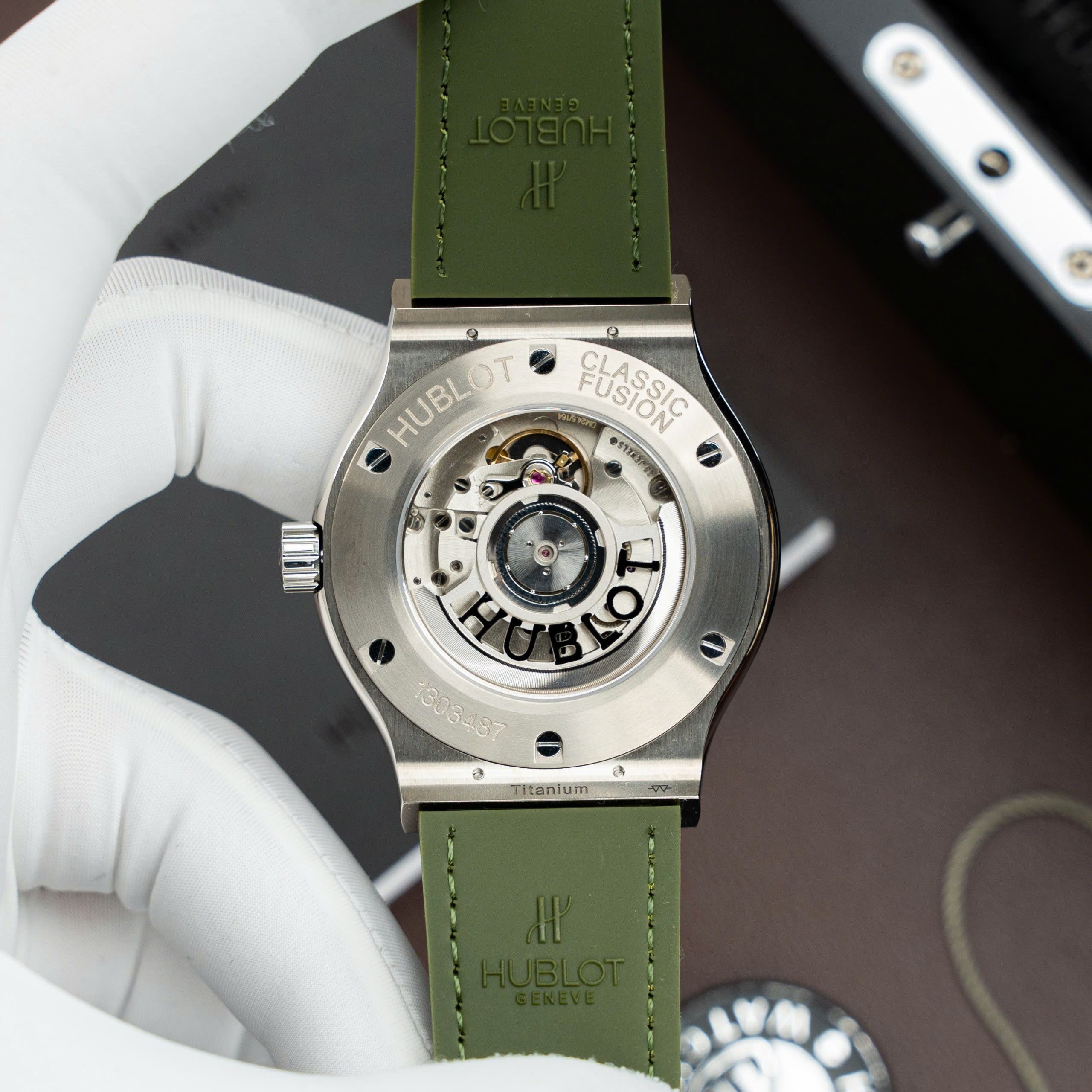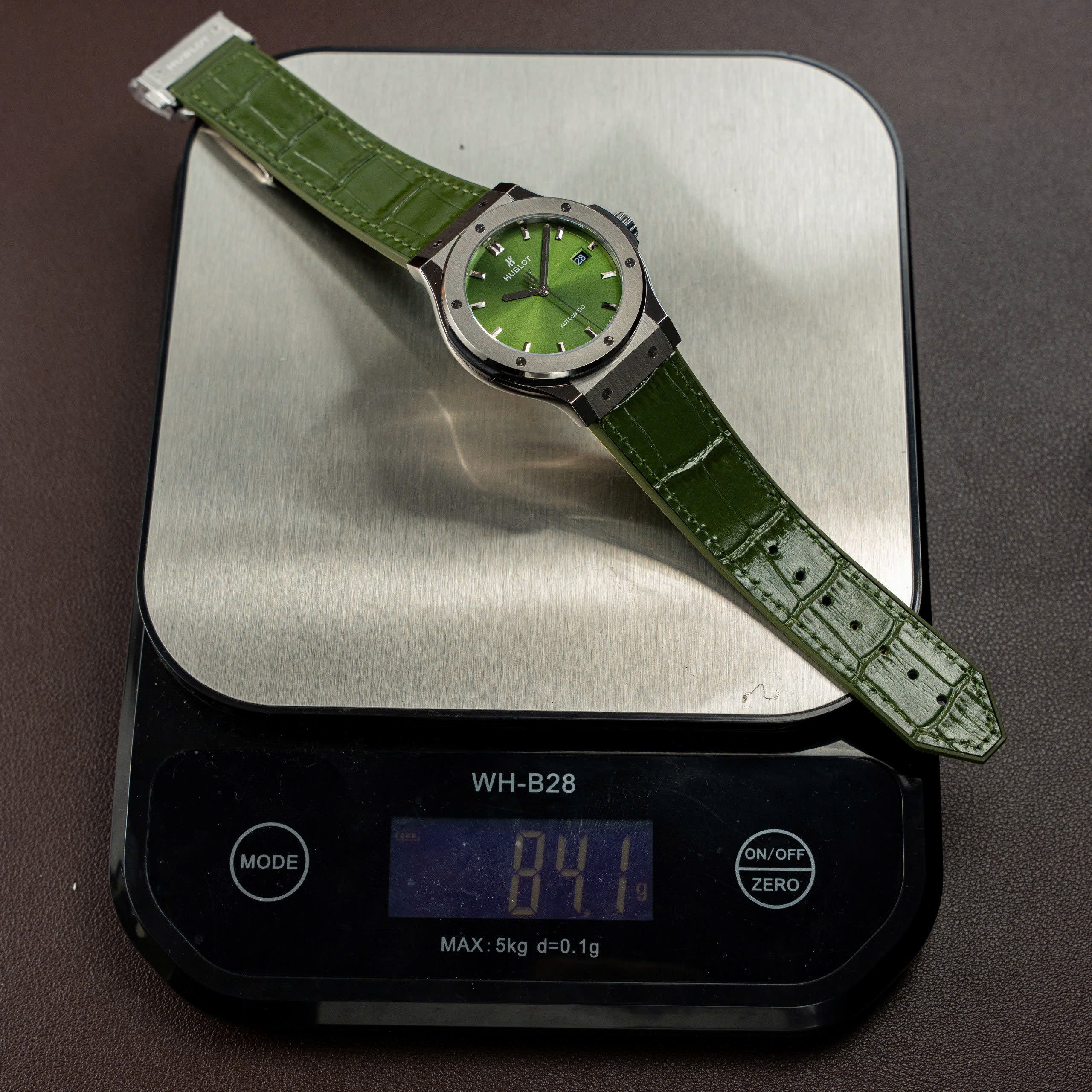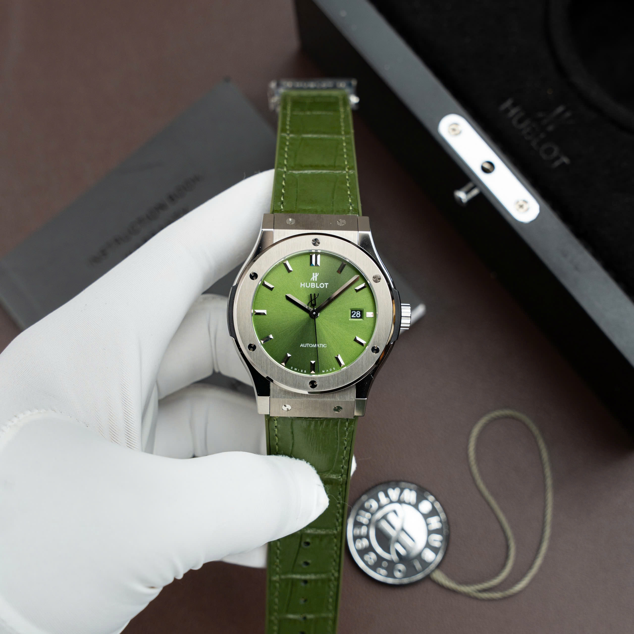 Hublot Classic Fusion Titanium SW300 Movement Crocodile Leather Strap Green Dial 85 Grams 42mm