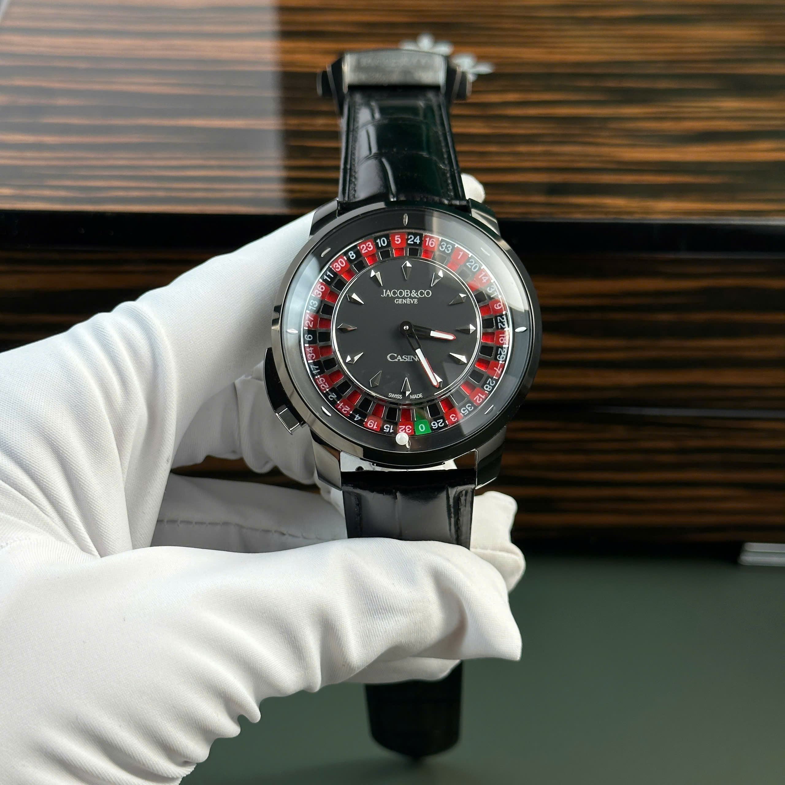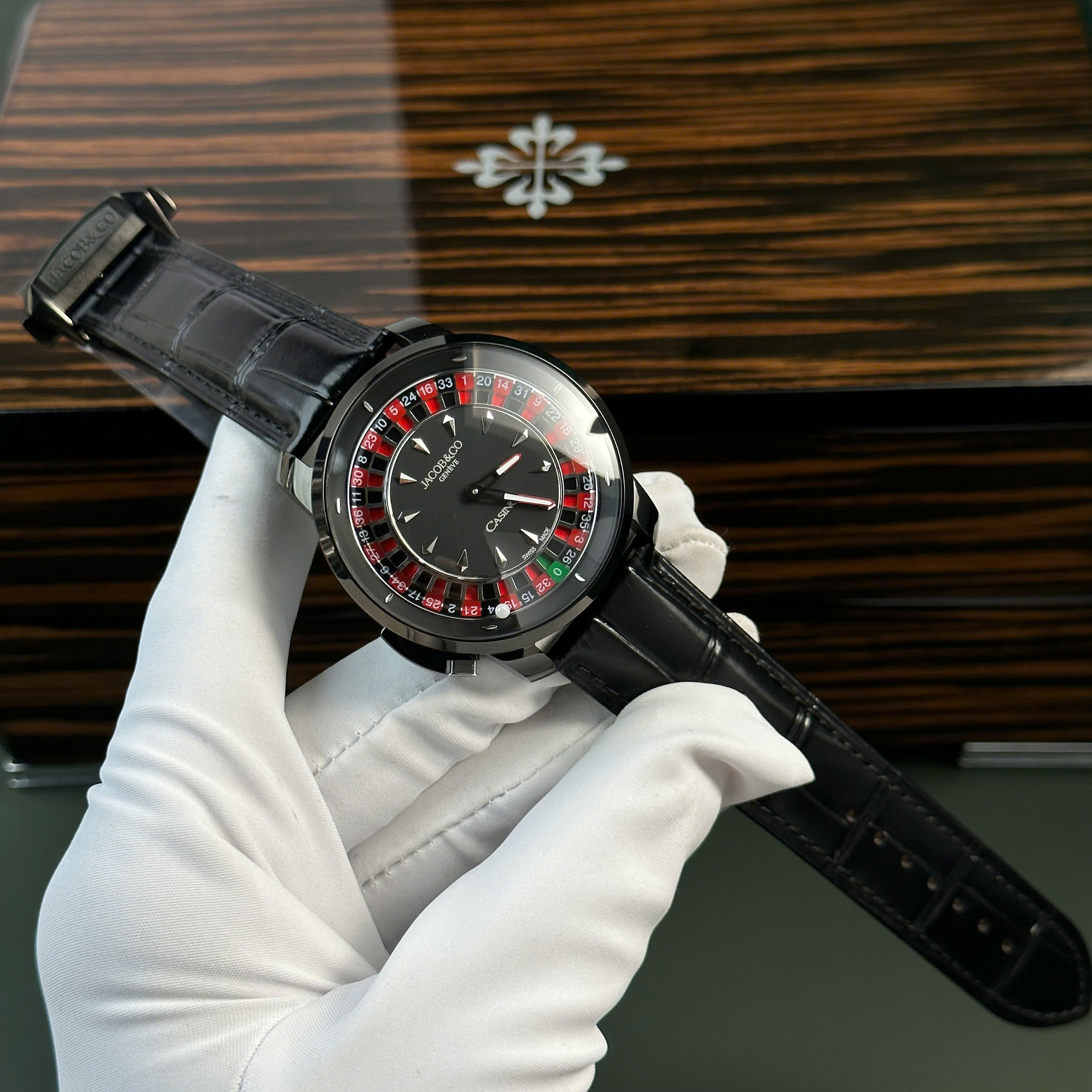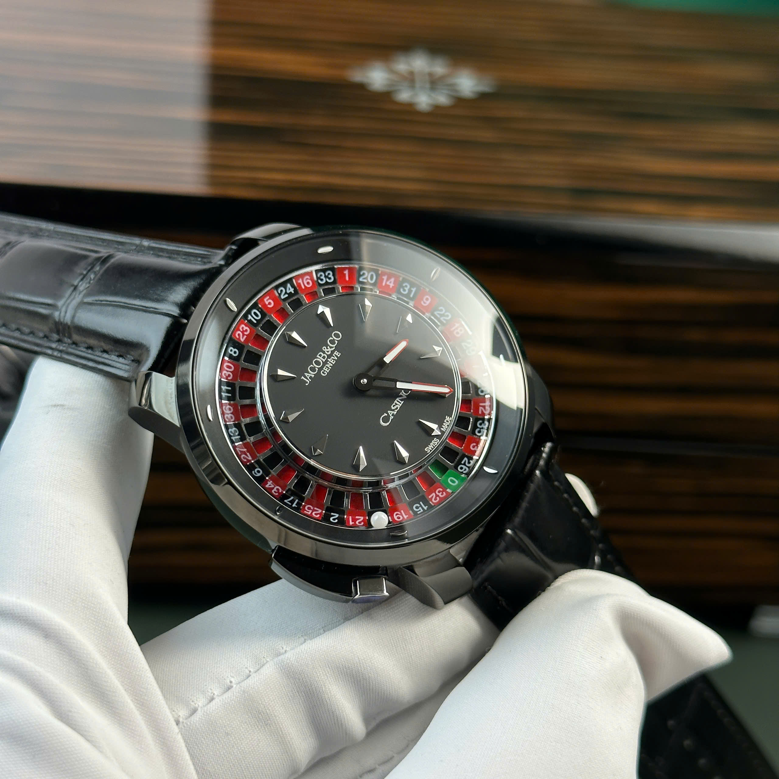 Jacob & Co Casino Roulette Best Replica Watches Black Leather Strap 44mm