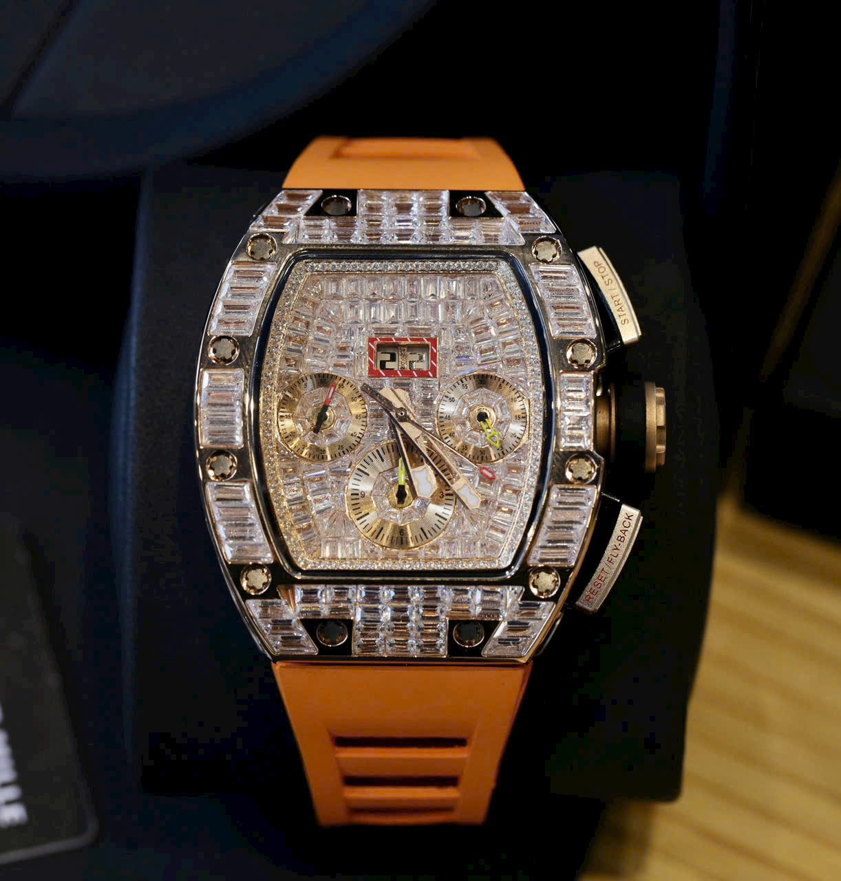Richard Mille RM011 Chronograph Replica Watch Full Diamonds & Rose Gold Automatic Men’s 45mm