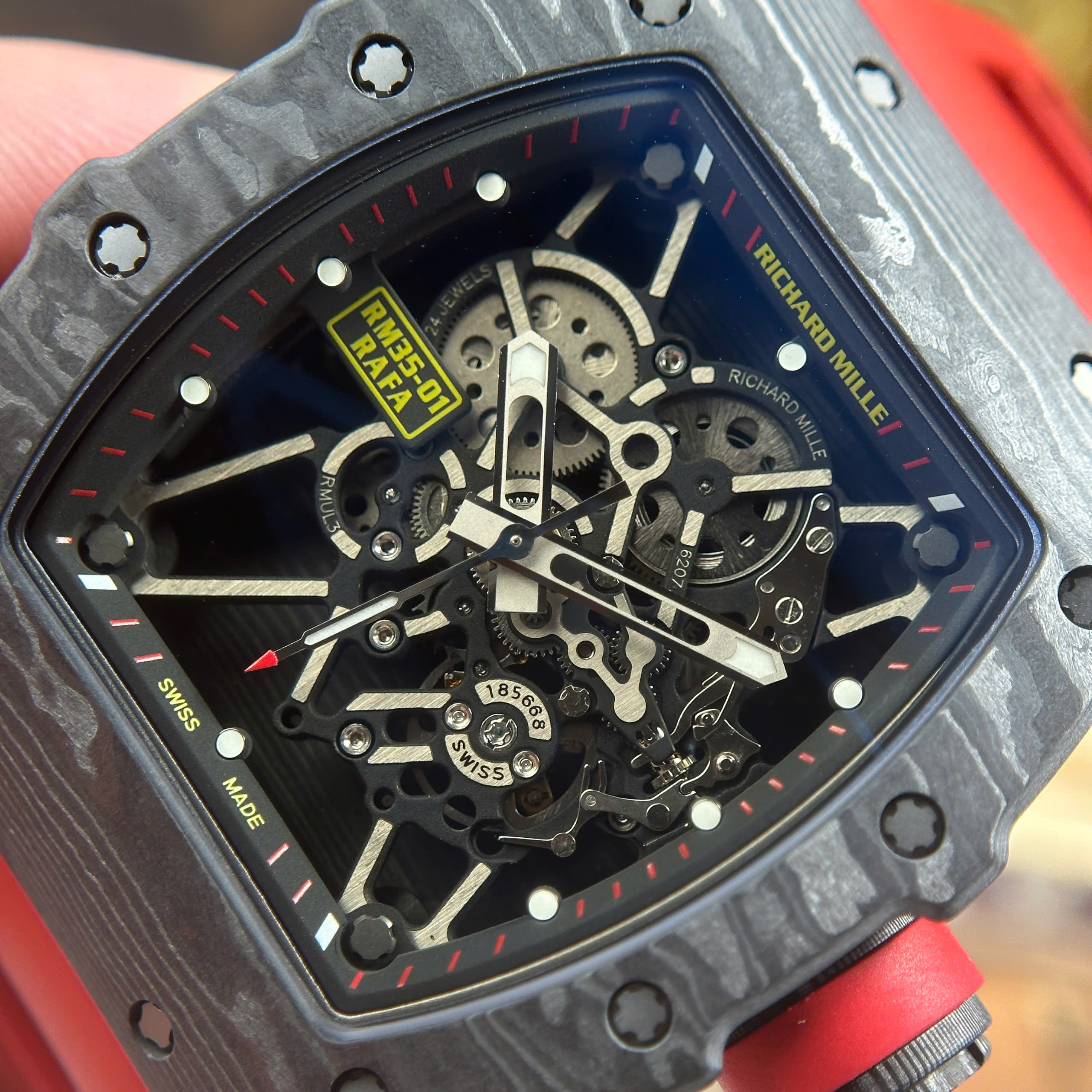 Richard Mille RM35-01 Rafael Nadal Replica Watch Red Rubber Strap ZF Factory 44.5×49.94mm
