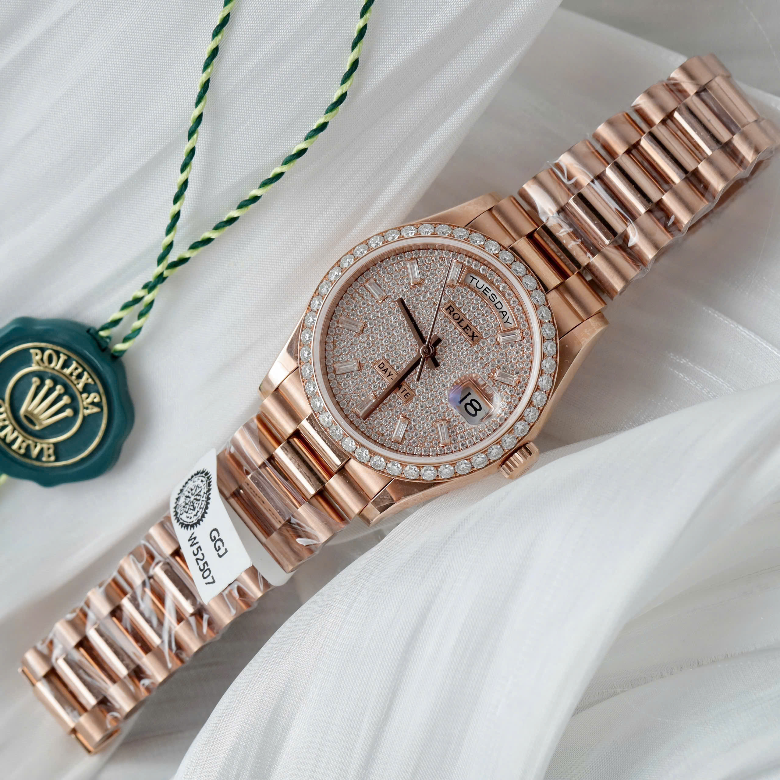 Rolex Day-Date 128345RBR 18K Rose Gold Wrapped Customs Moissanite Diamonds GM Factory 36mm
