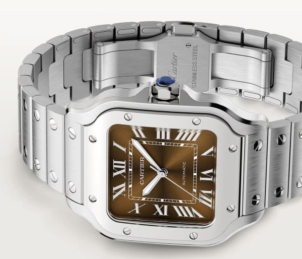 The Santos de Cartier in stainless steel, particularly in Medium or Large sizes, continues to be a top choice in 2025. Its appeal lies in the perfect balance between robustness and elegance. The characteristic rounded square design, along with the visible screws on the bezel, creates an unmistakable, distinctive look.